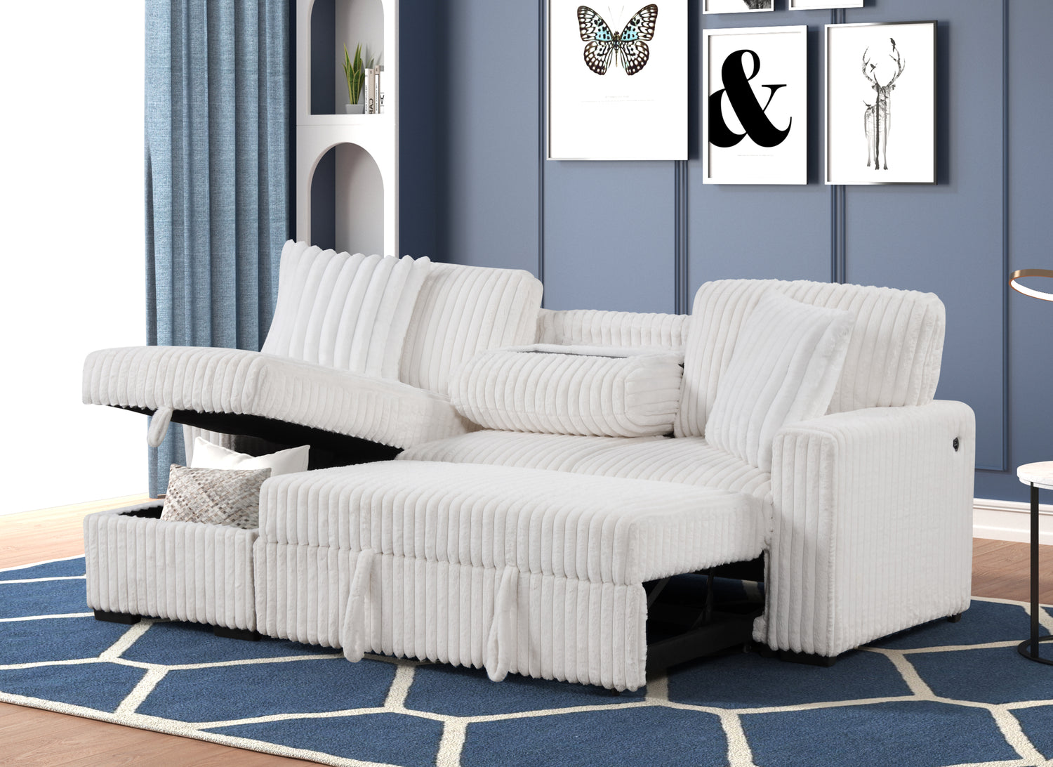 Plush Sectional Sofa W/ Pull Out Sleeper made with Velvet fabric- Cream (CA Warehouse inventory) is available