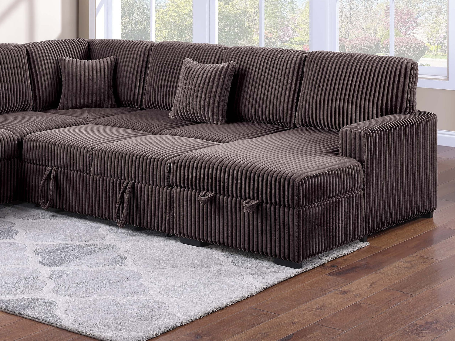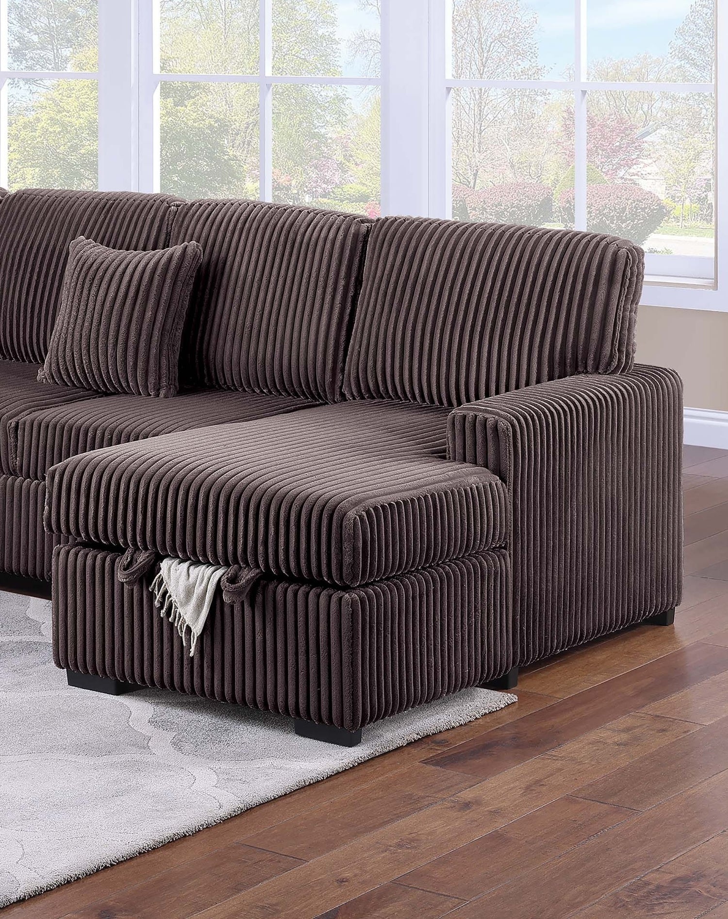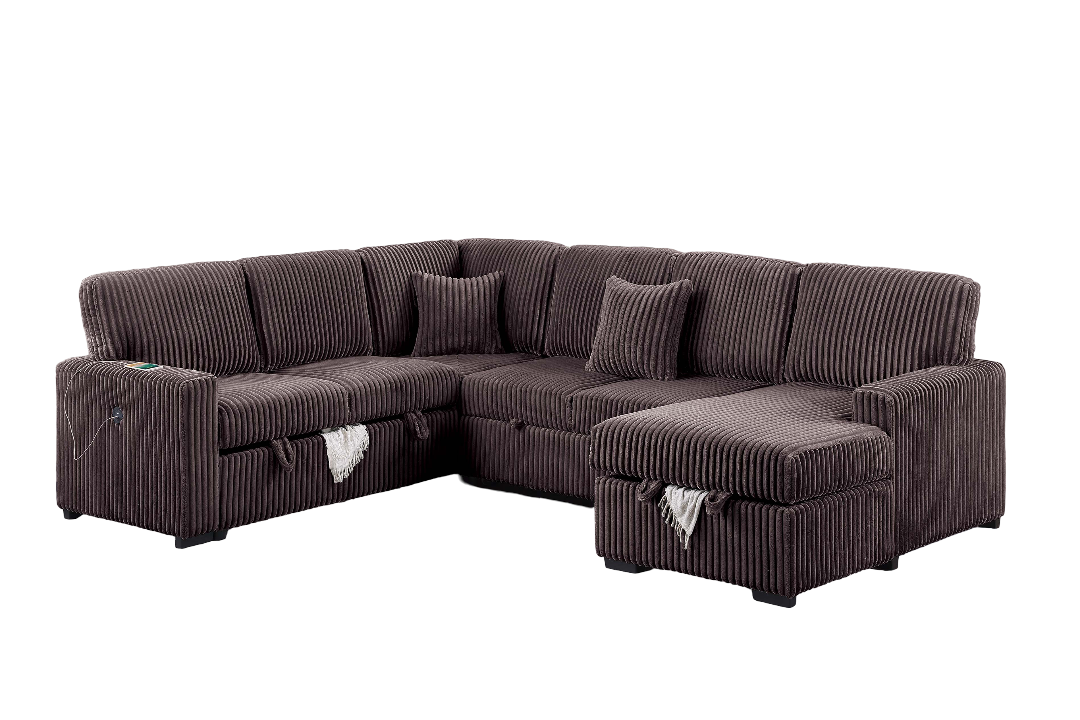 Chocolate Finish Modern Style 4pc Convertible Sectional Set USB Port Sofa Storage Reversible Sleeper Corduroy Fabric Primary Living Room is available