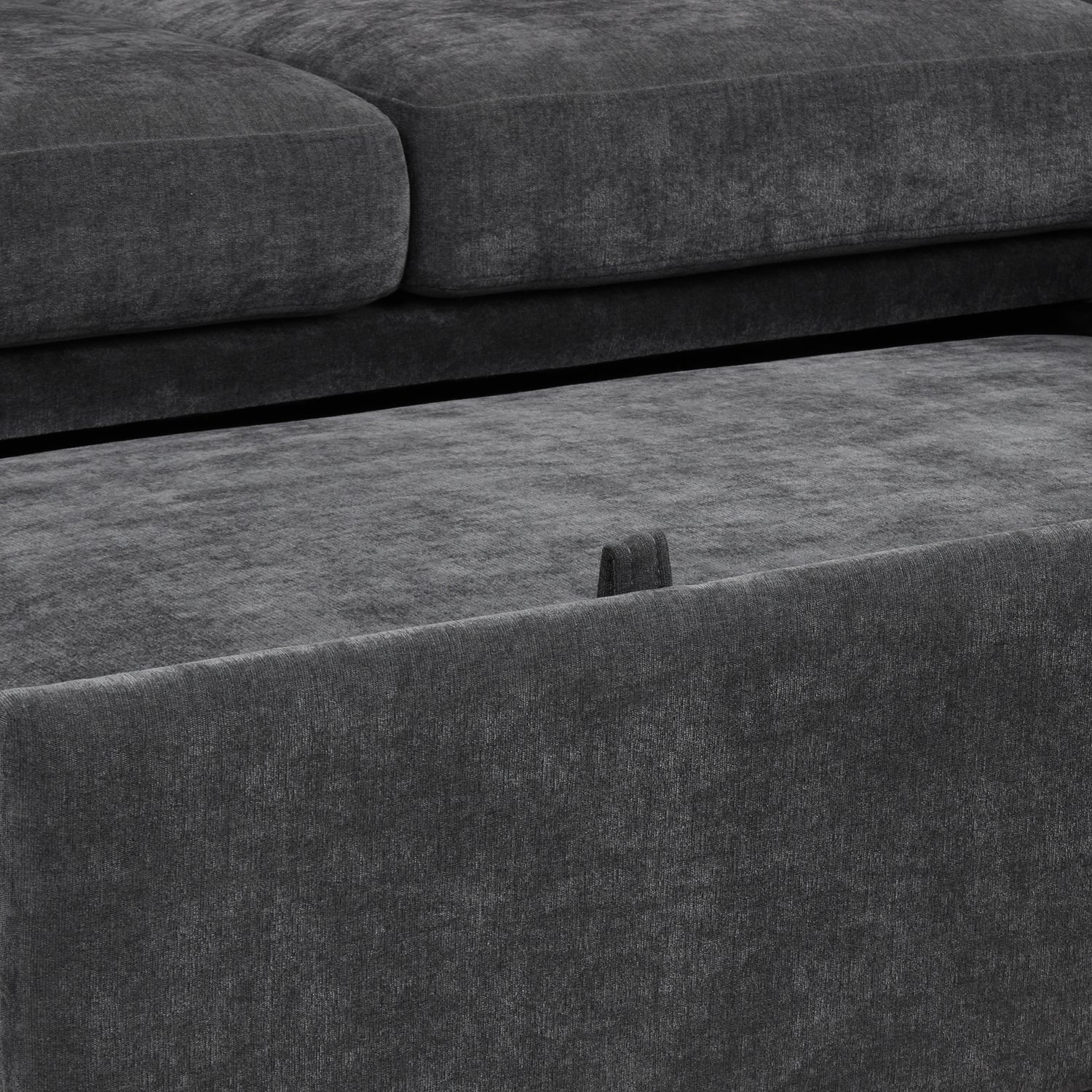 Gray Convertible L-shaped Sofa Bed with USB Ports, Power Sockets and Back Pillows in Chenille Fabric is available