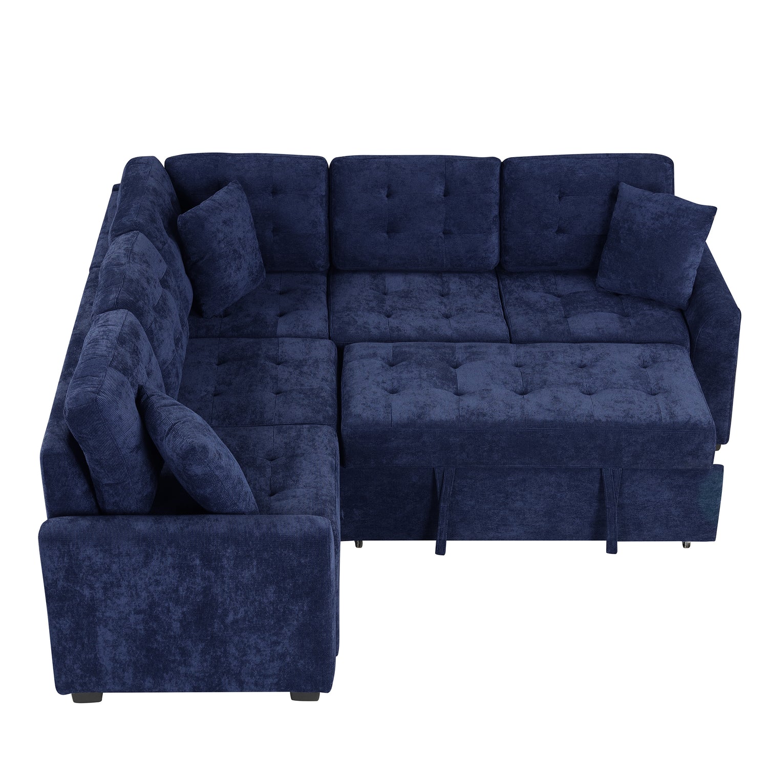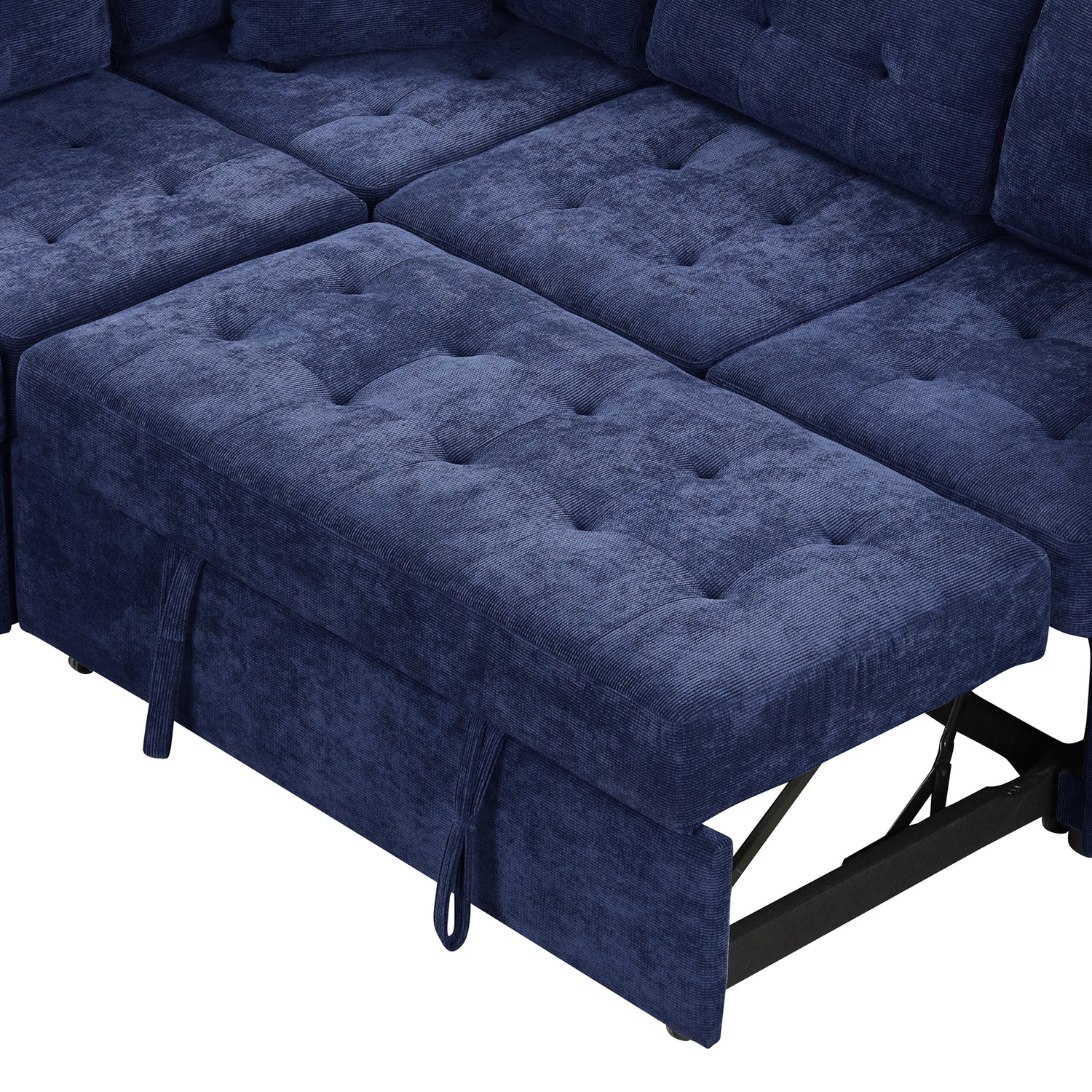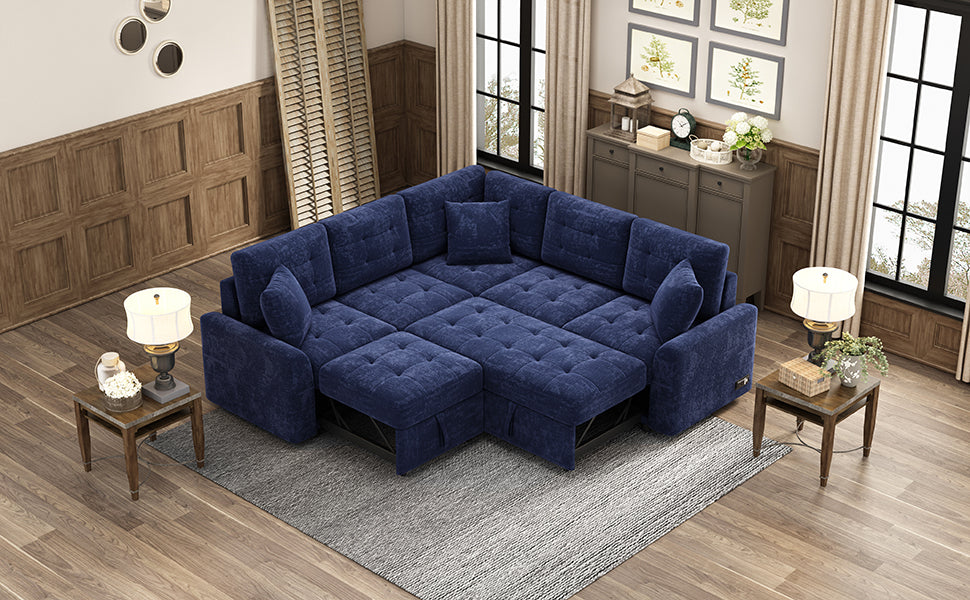 Navy Blue L-shape Sofa Bed with Pull-out Sleeper, USB Ports, Power Sockets, Corded Velveteen, 82.6' is available