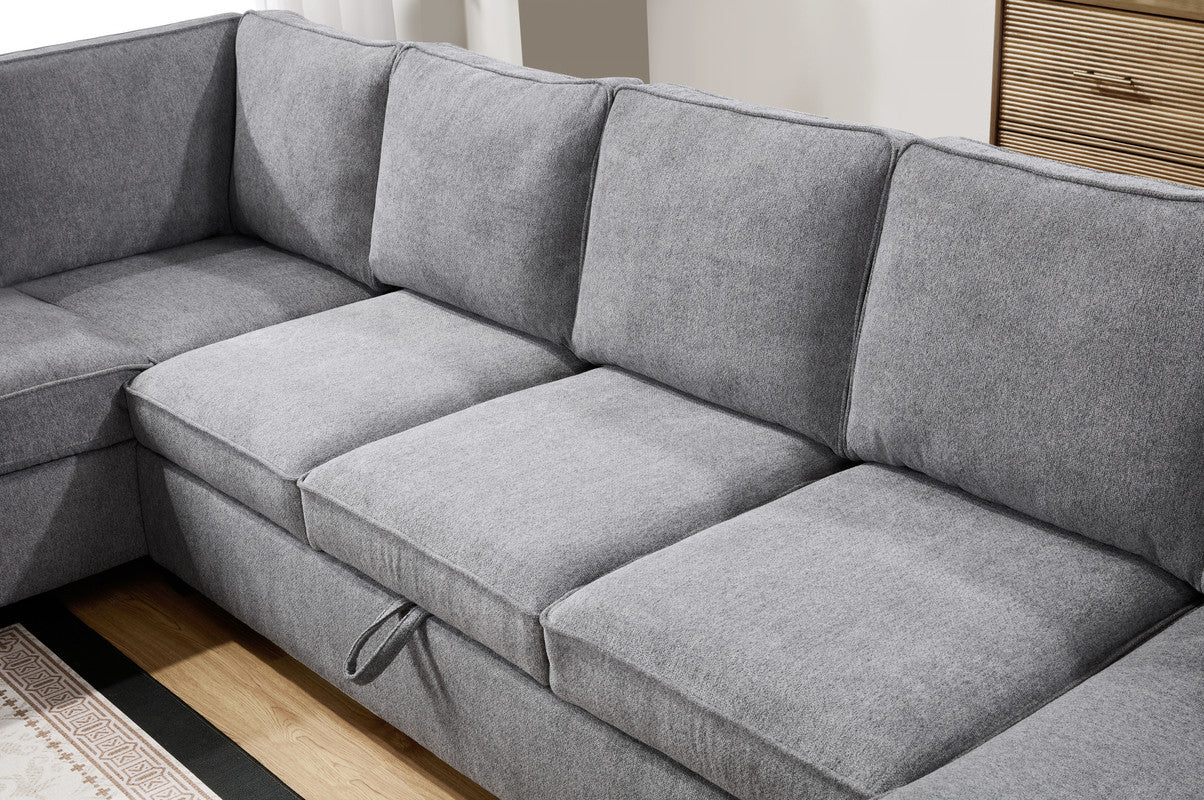 Samira 137'W Gray Chenille Sectional Sofa with Right-Facing Chaise, Underseat Storage, Throw Pillows is available