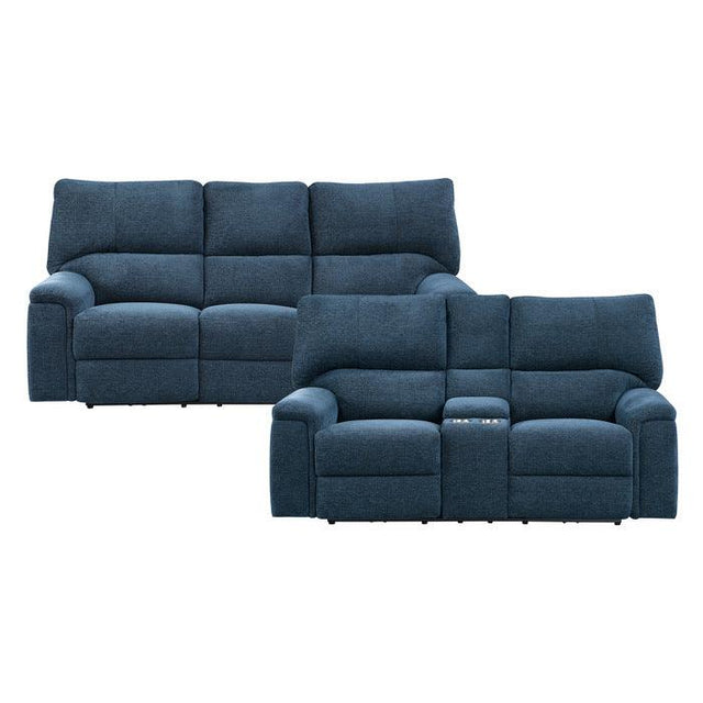Homelegance - Dickinson 2 Piece Power Double Reclining Sofa Set in Indigo - 9413IN*2PWH