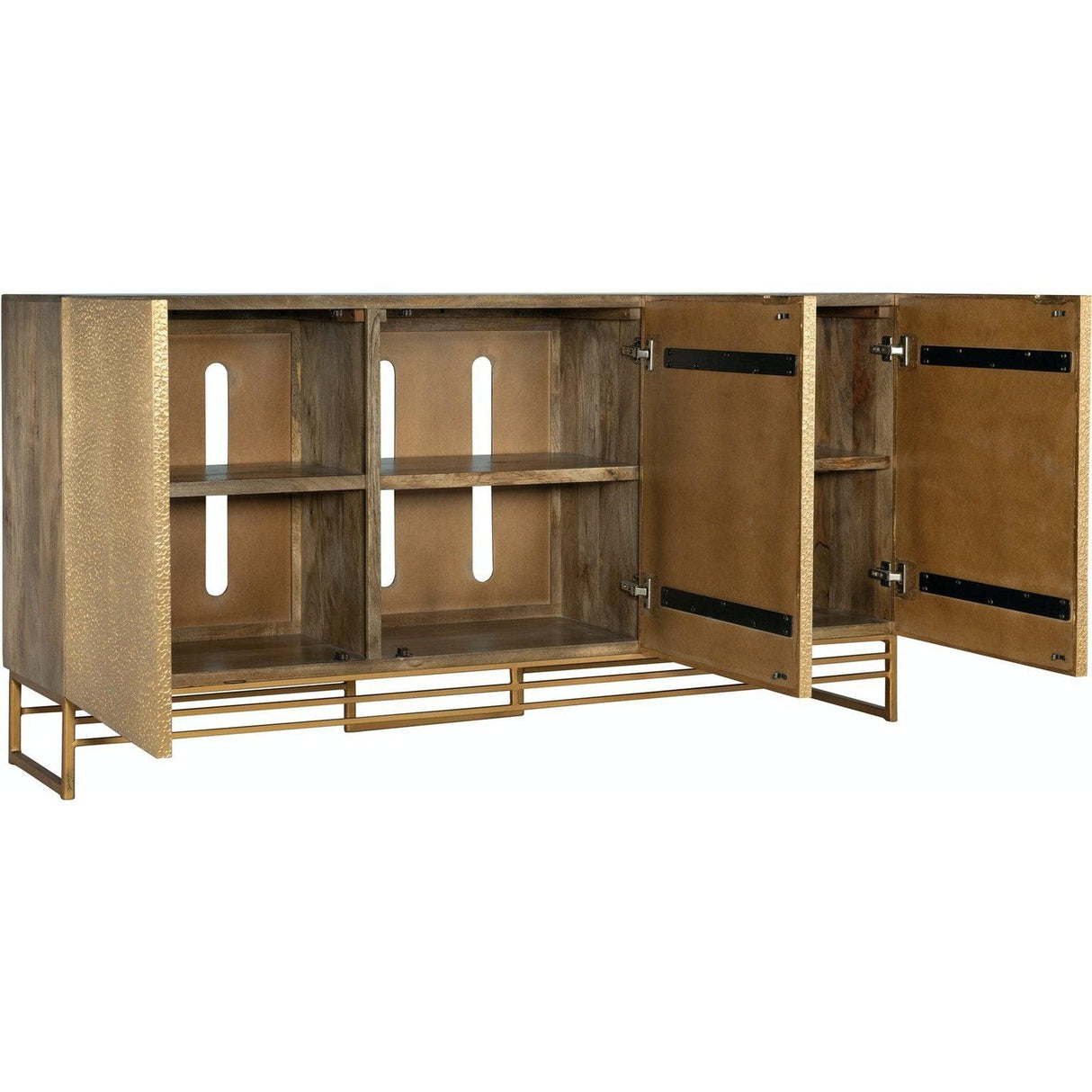Elegant Entertainment Console in Mango Wood & Textured Gold Foil