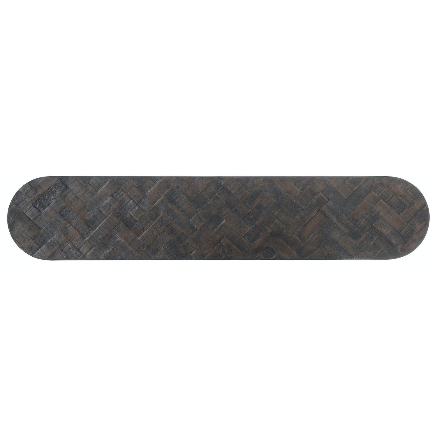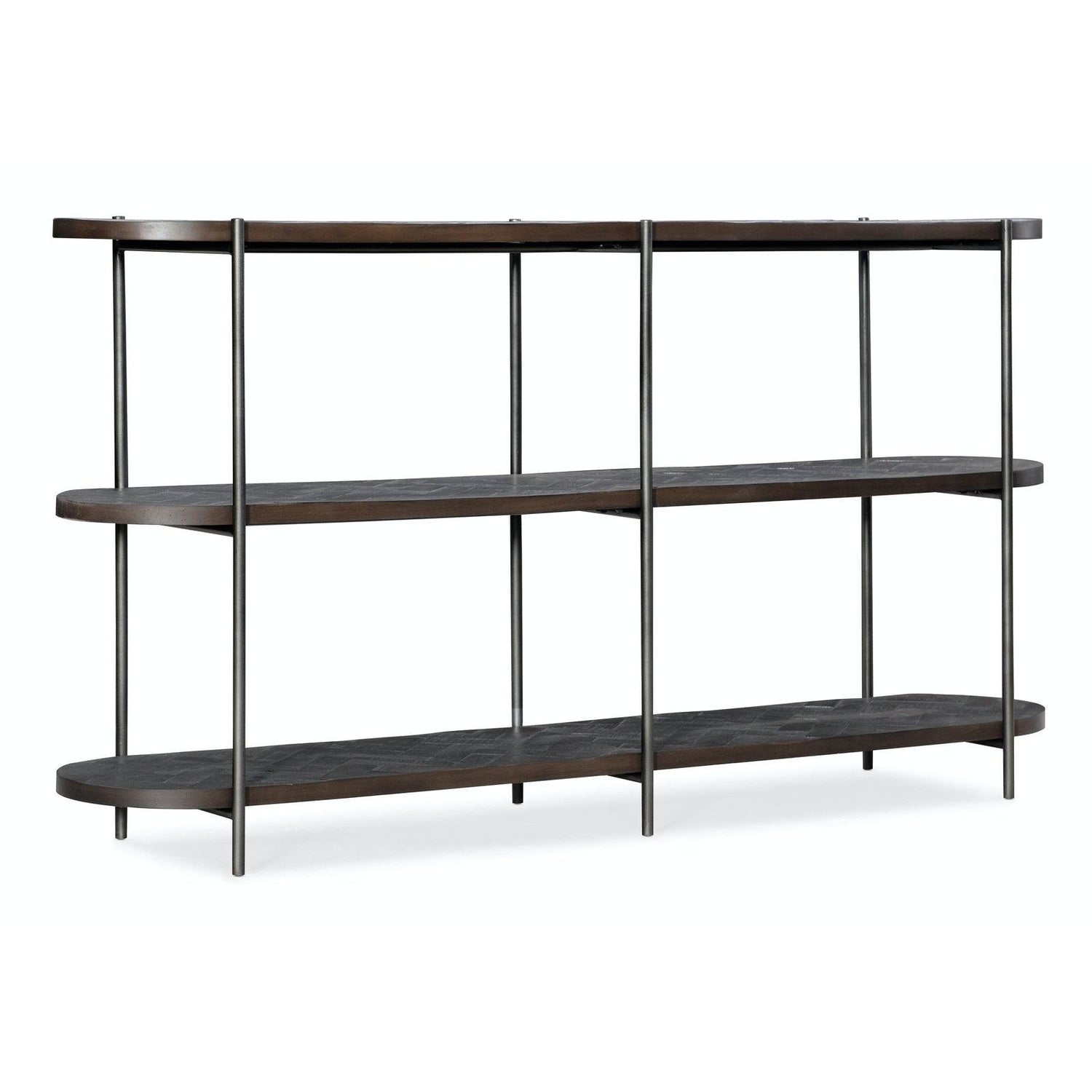 Rustic Industrial Oval Console Table with Shelves – Hooker Furniture