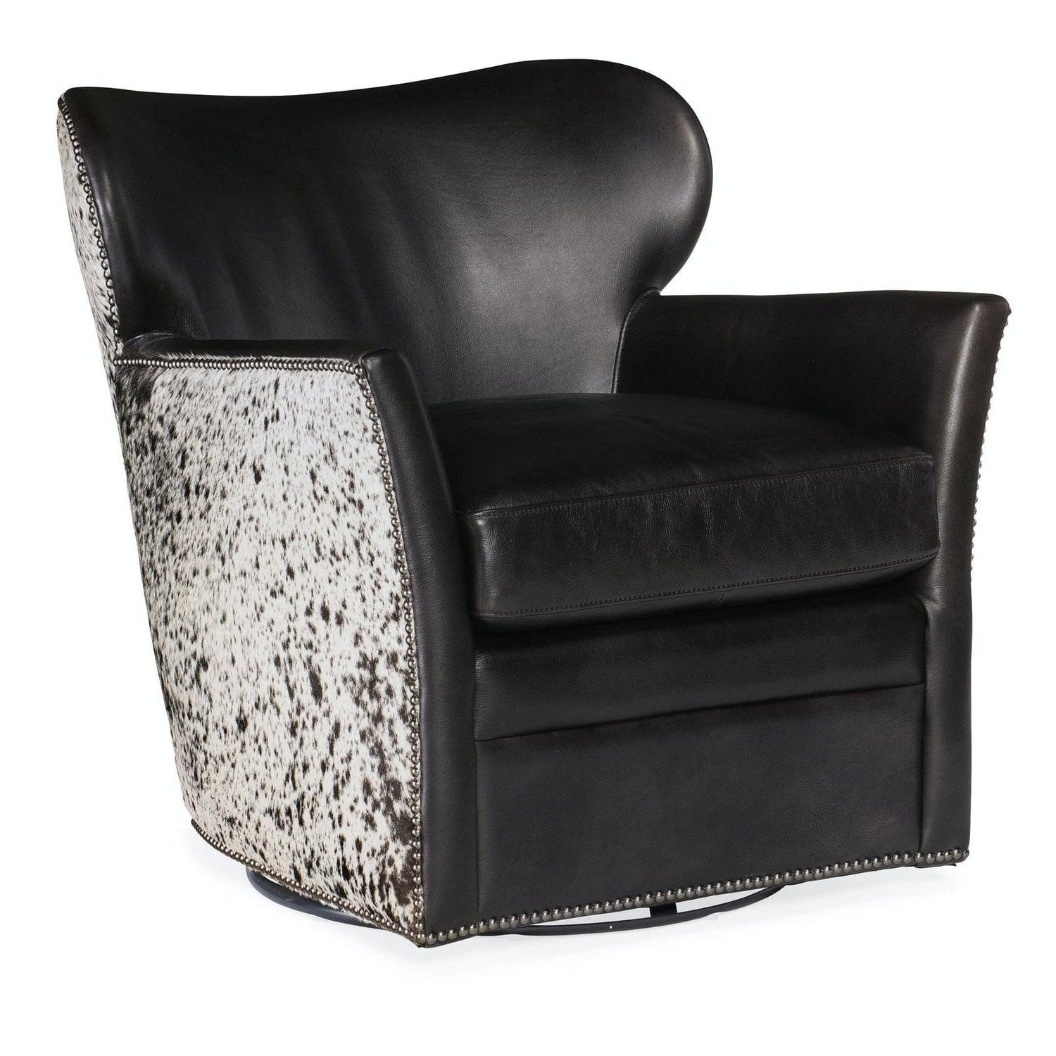 Hooker Furniture Kato Leather Swivel Chair – Legendary Graphite & Debonair Espresso Leather, Salt and Pepper & Dark Brindle Hair-On-Hide - Dark Brindle is available