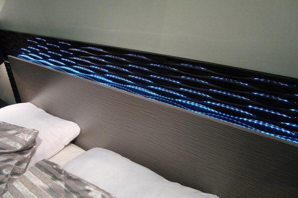 - Platform bed with black and grey lacquer finish comes in an amazing design with LED lighting system on the headboard that can be controlled with a switch