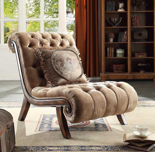 The HD-1631 Chair by Homey Design combines plush chenille upholstery, solid wood craftsmanship, and Dark Red Mahogany with Antique Gold detailing. This luxury accent chair ships fully assembled for convenience, offering timeless transitional style and comfort. Free Nationwide Shipping is included with every order.
