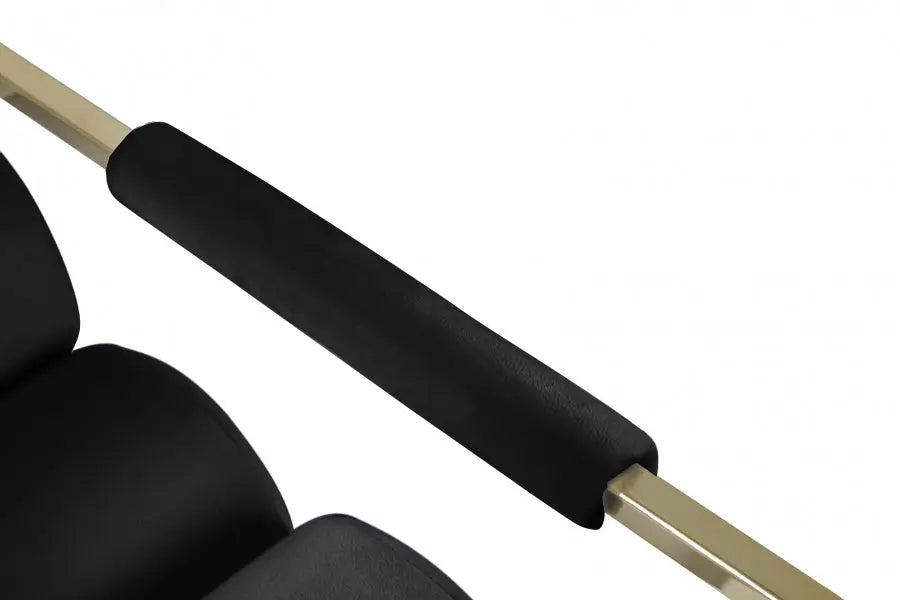This Wayne velvet accent chair is a fitting addition to any contemporary interior space. Lovely soft black velvet feels sleek and chic to the touch, ensuring thatyou'rere seated in total comfort. Deep channel tufting along the back and seat of the chair and its padded arms add to its comfort potential. The chair’s gold iron frame adds to its contemporary design and lends it the sturdiness needed for years of beautiful use.
