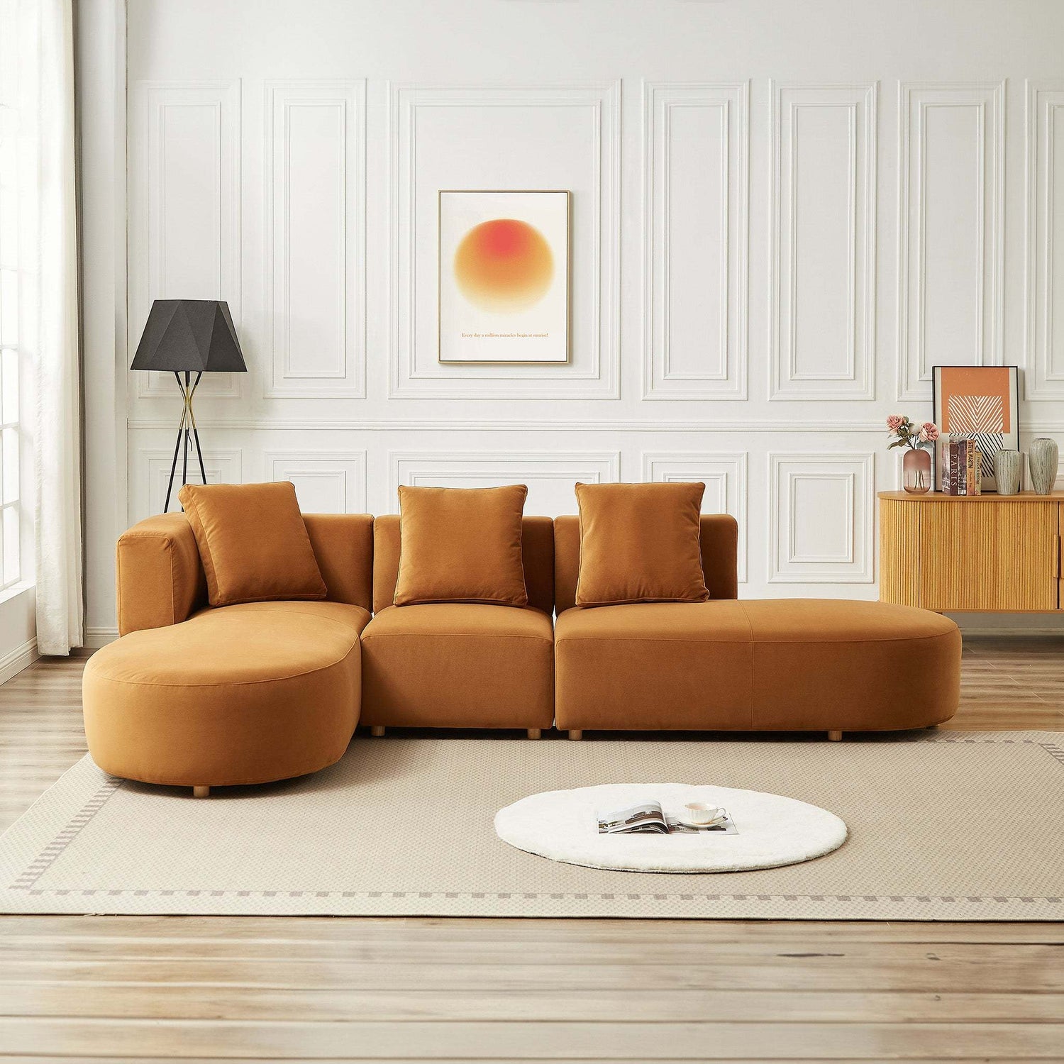- [Plush Cloud-like Comfort] Experience unparalleled comfort with our curved cloud sofa, meticulously designed to provide optimal support for your body. Three accompanying pillows offer additional support, ensuring a luxurious lounging experience. Sink into the plush fabric cushions and indulge in ultimate relaxation, whether you're unwinding after a long day or enjoying a cozy movie night.
