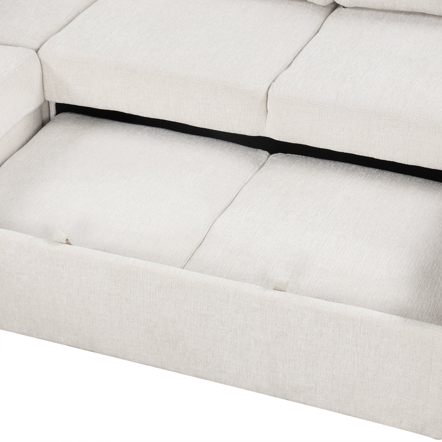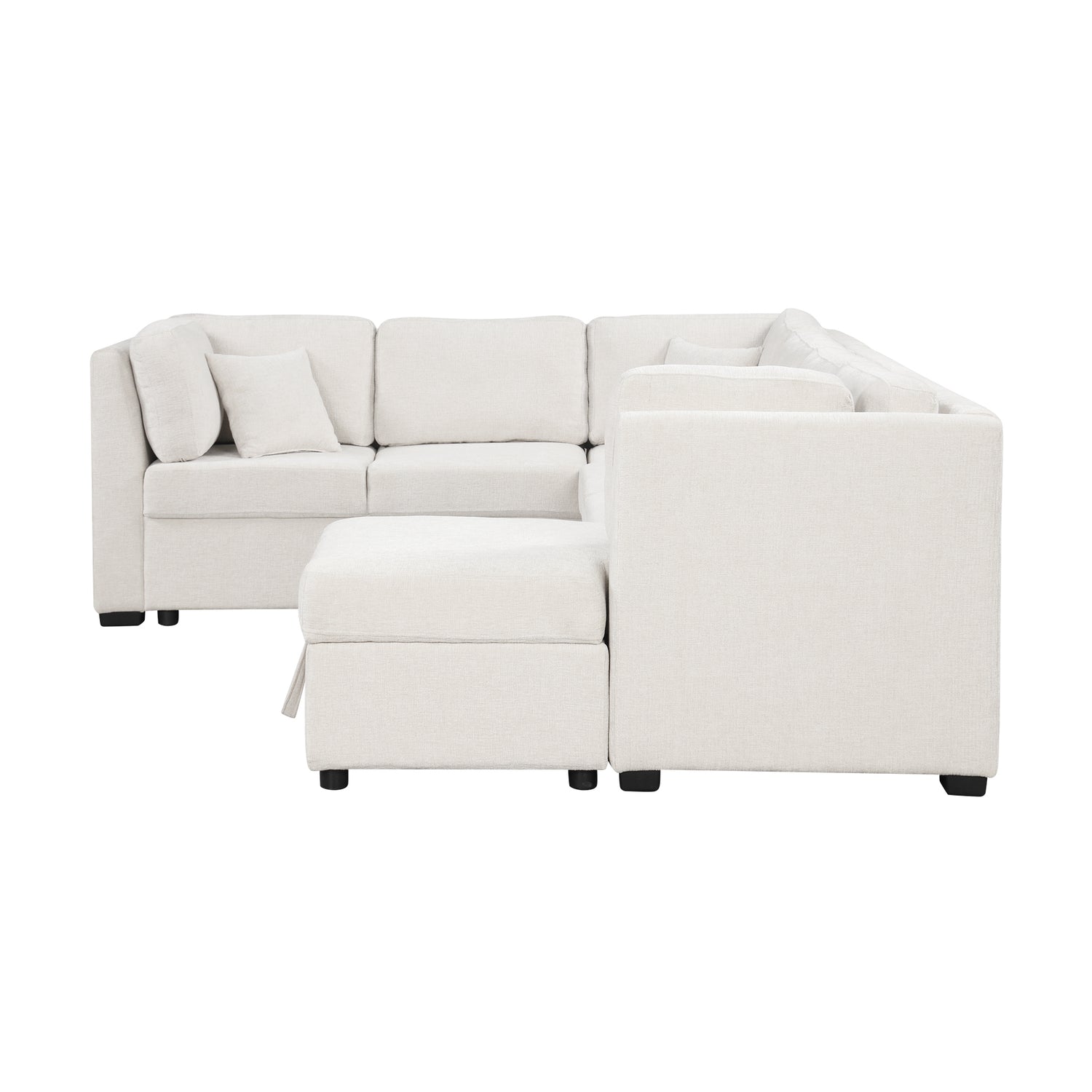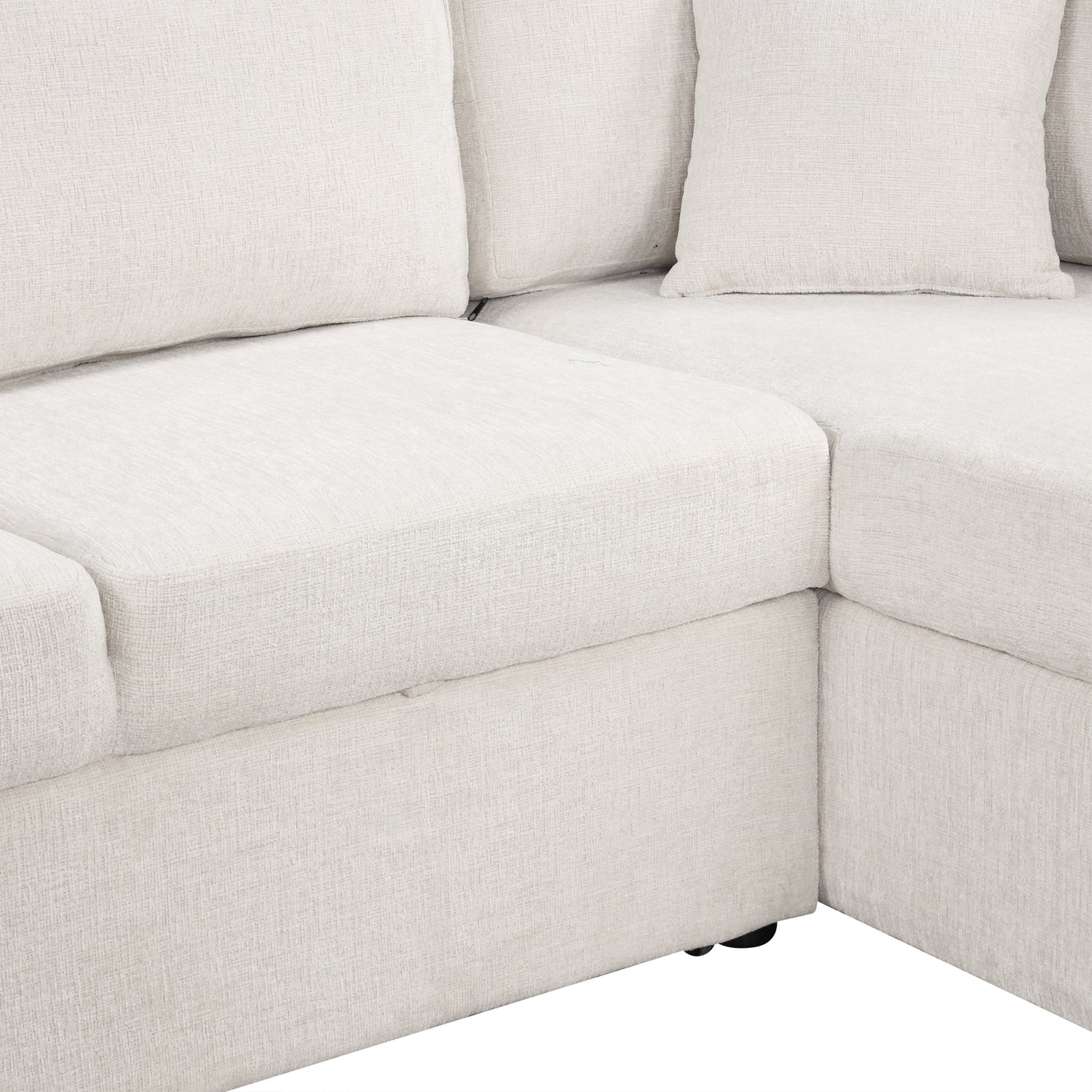 - Ultimate Comfort - This U-shaped sectional sofa is upholstered in high-quality chenille fabric, which is soft, breathable, skin-friendly. Cushions are filled with high resilience foam and spring that gives good support for your body and creates a durable yet soft seat, ensuring the sofa bed will not sag over time. This sofa also attaches three soft back pillows for added back support or sleeping