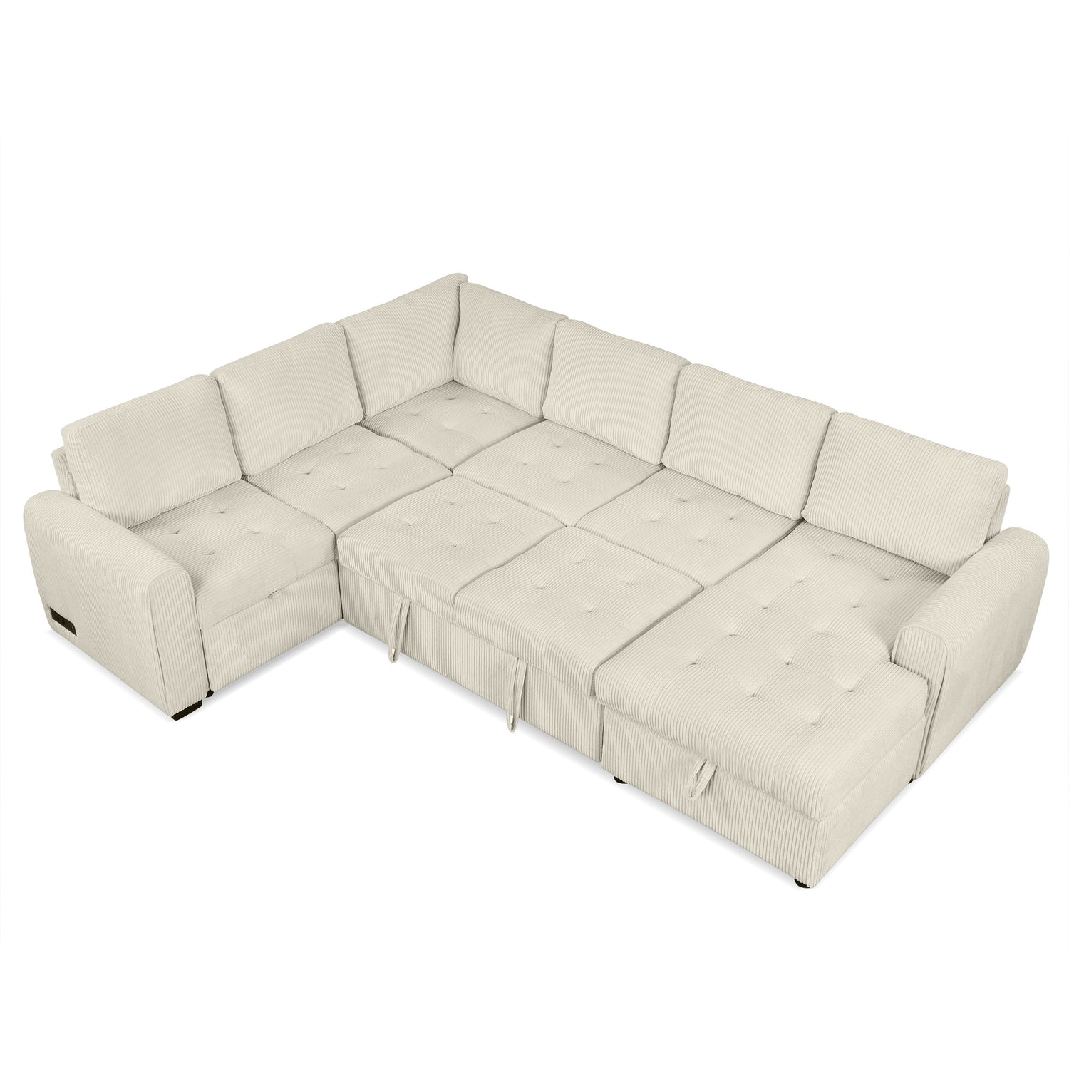 Beige U-Shaped Sectional Sofa with Pull-out Bed and Storage Chaise, Corduroy, 107.5' is available