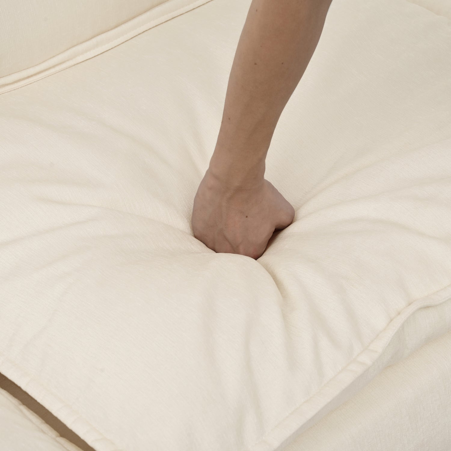 - Chic and Trendy Design:Our sofa showcases a modern aesthetic with wide-piped edge cushions and a stylish faux double-layer seating surface. This unique design not only enhances visual appeal but also adds a touch of elegance to your home decor.