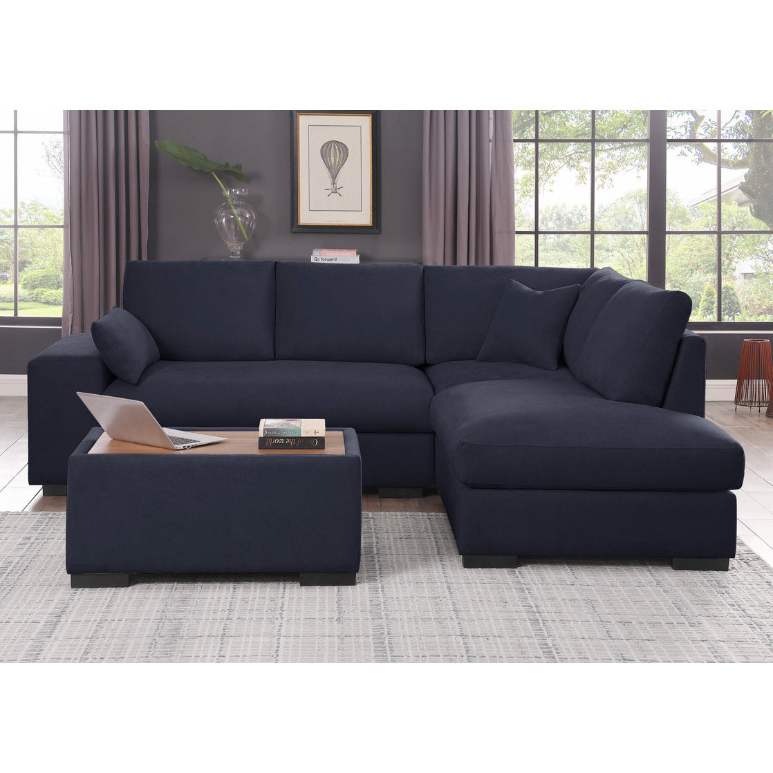 Woven Fabric Sectional Sofa with Right Facing Chaise and Console Ottoman, Dark Gray is available