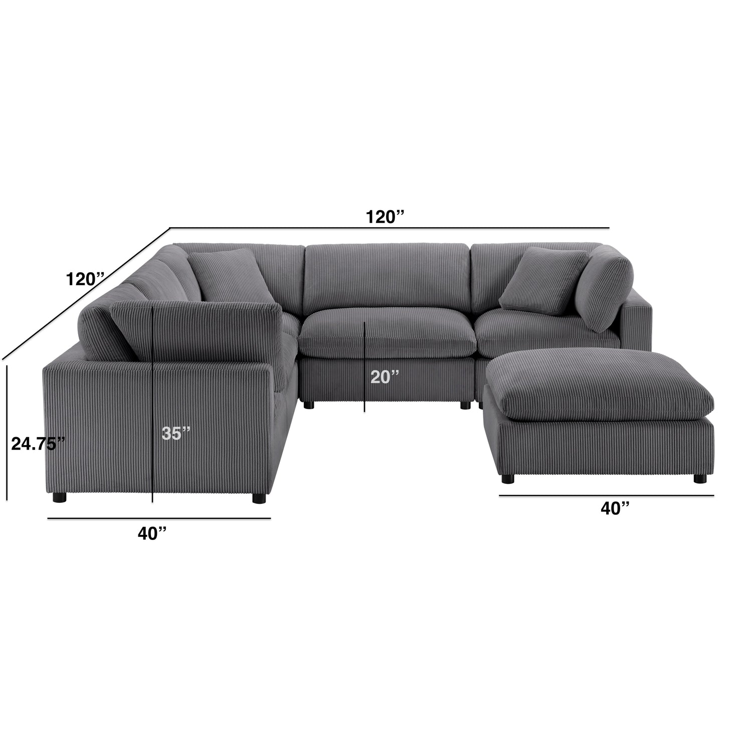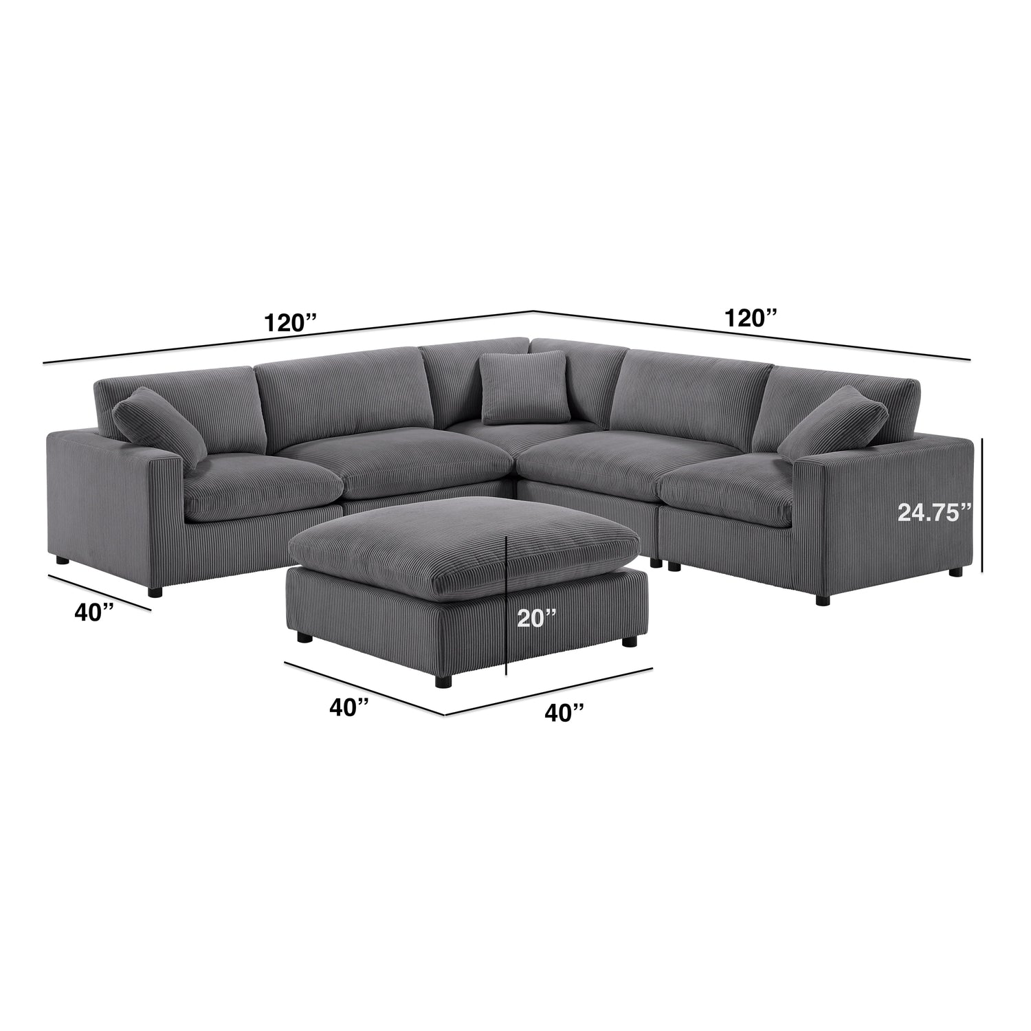 Chelsea Modular 6-Piece Sectional in Charcoal with Plush Polyester Upholstery