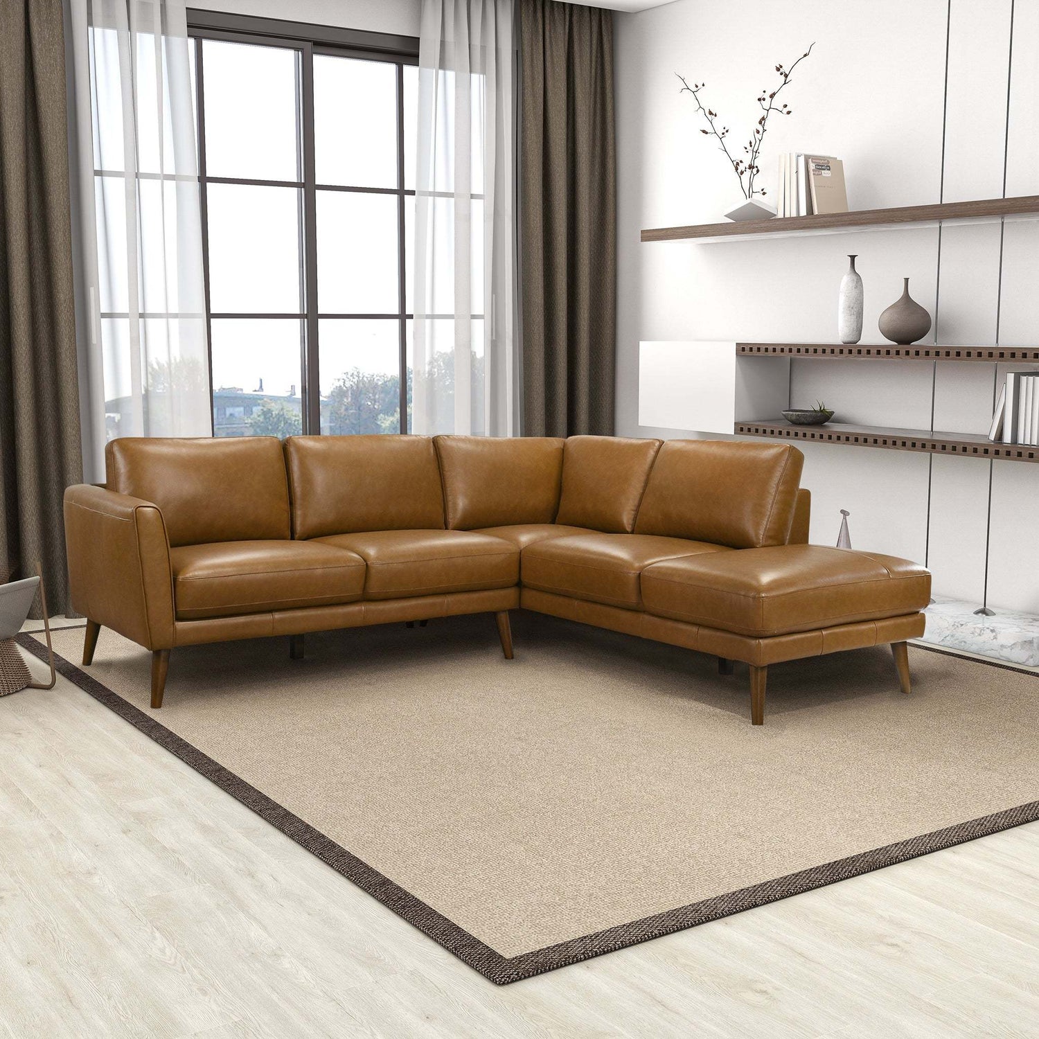 Mid-In Mod Benson Tan Leather Sectional Sofa with Right Facing Chaise - Mid-Century Modern Design