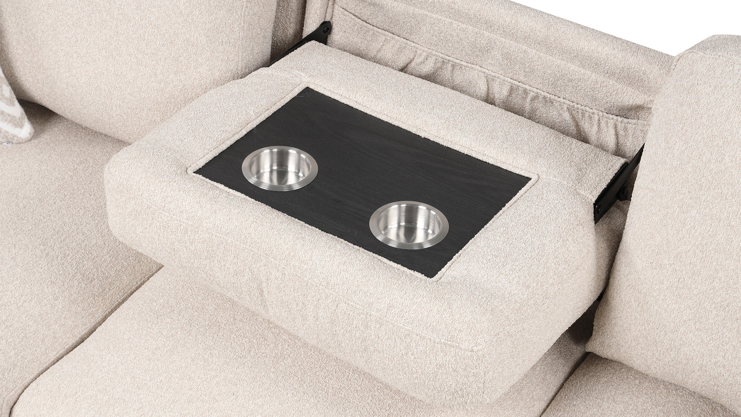- Drop-Down Center Tray: Equipped with dual cup holders to keep your drinks secure while you relax or entertain.