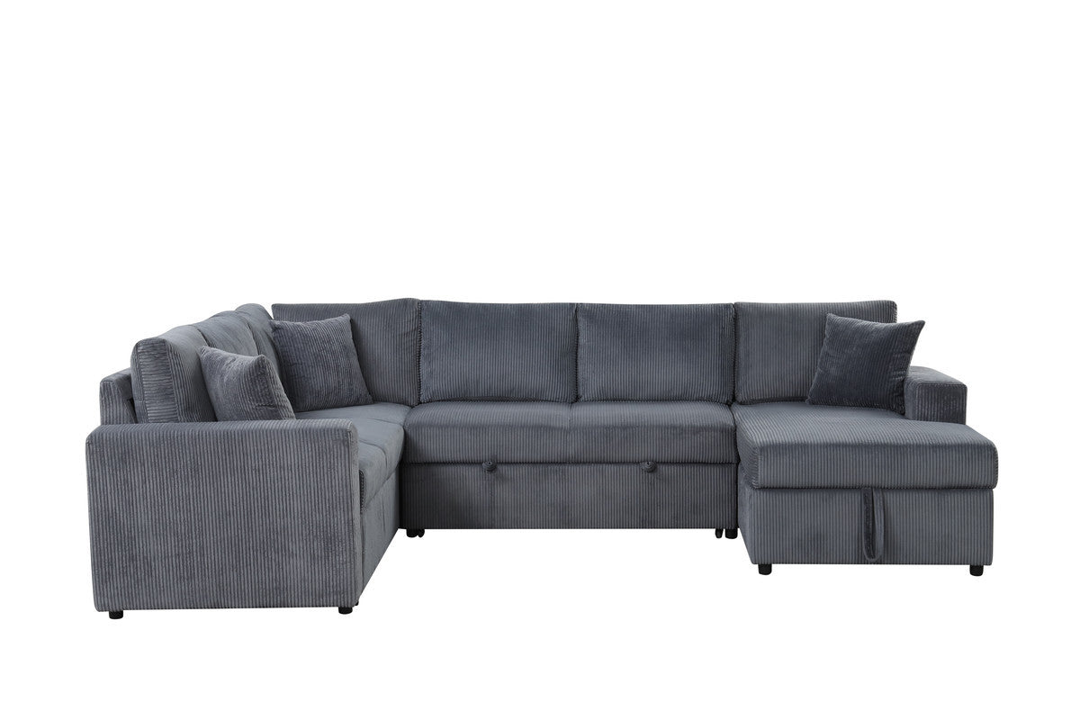 Rinaldo 123'W Gray Corduroy Sleeper Sectional Sofa with Right-Facing Storage Chaise and Throw Pillows is available