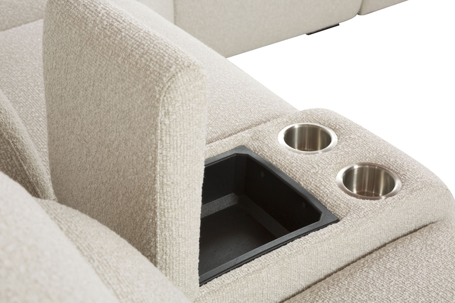 Dayana Beige Boucle Power Recliner Sectional Sofa for 5 People with Cupholder Console & Adjustable Headrest