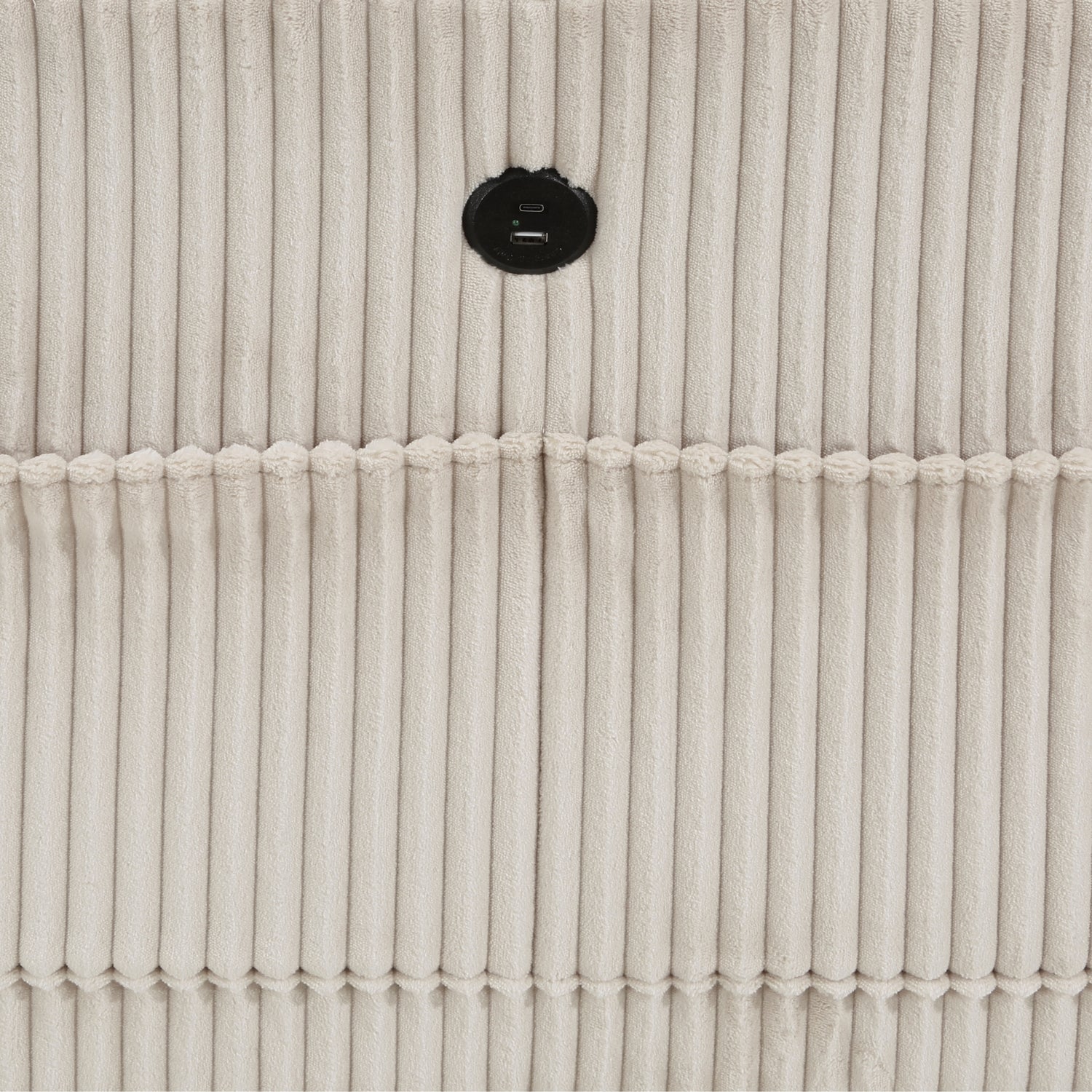 6-Piece Modular Sectional with Storage Seats, Side Pockets, Charging Ports Beige Corduroy Fabric Modern Living Room Sectional Couch Solid Wood Furniture