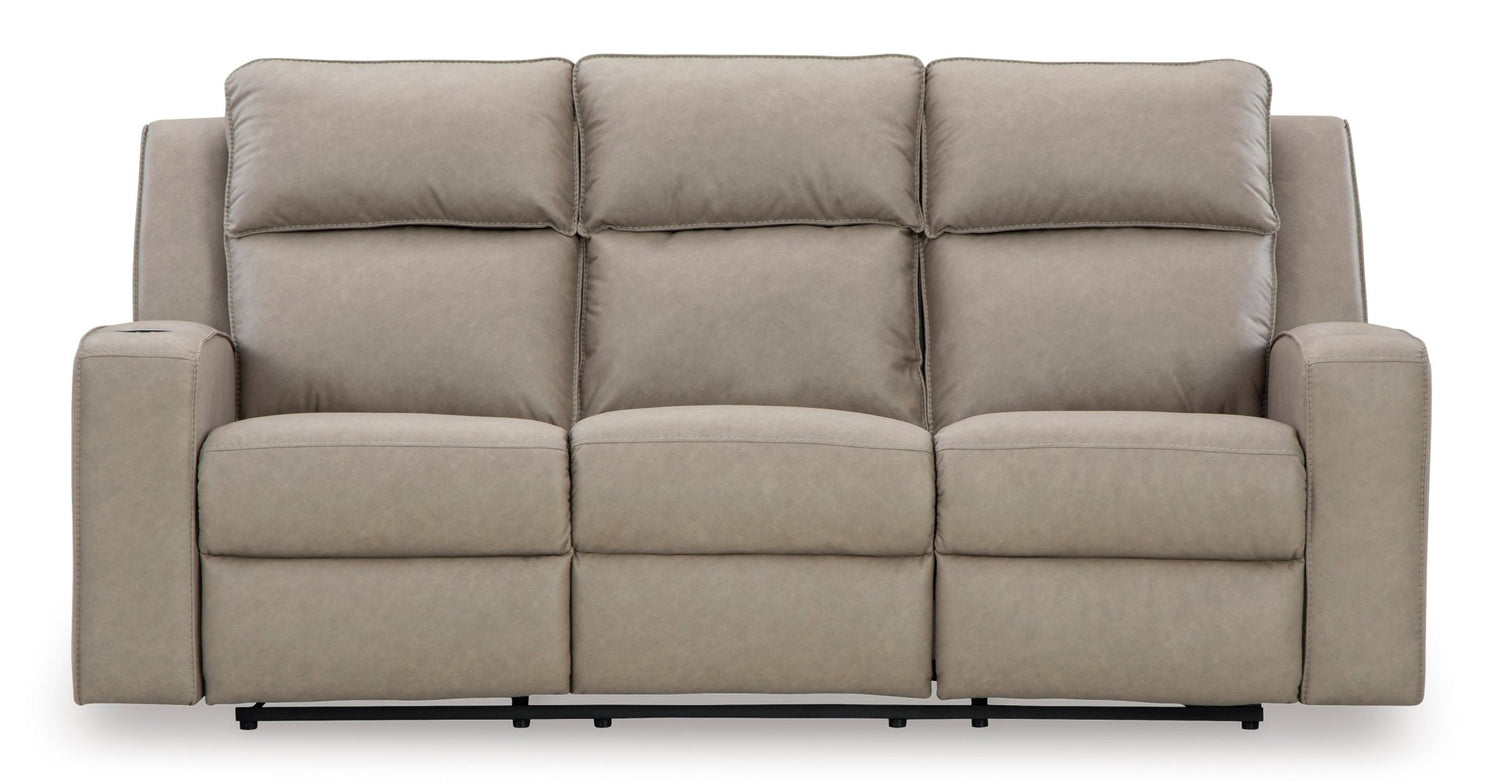 Lavenhorne Reclining Sofa Pebble Faux Leather with Drop-Down Table – Ashley Furniture