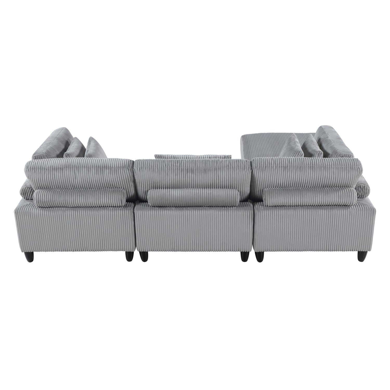 Living Room Furniture 4-Piece Modular Sectional Sofa Set Gray Corduroy Soft Cushion Pillows Solid Wood Legs is available