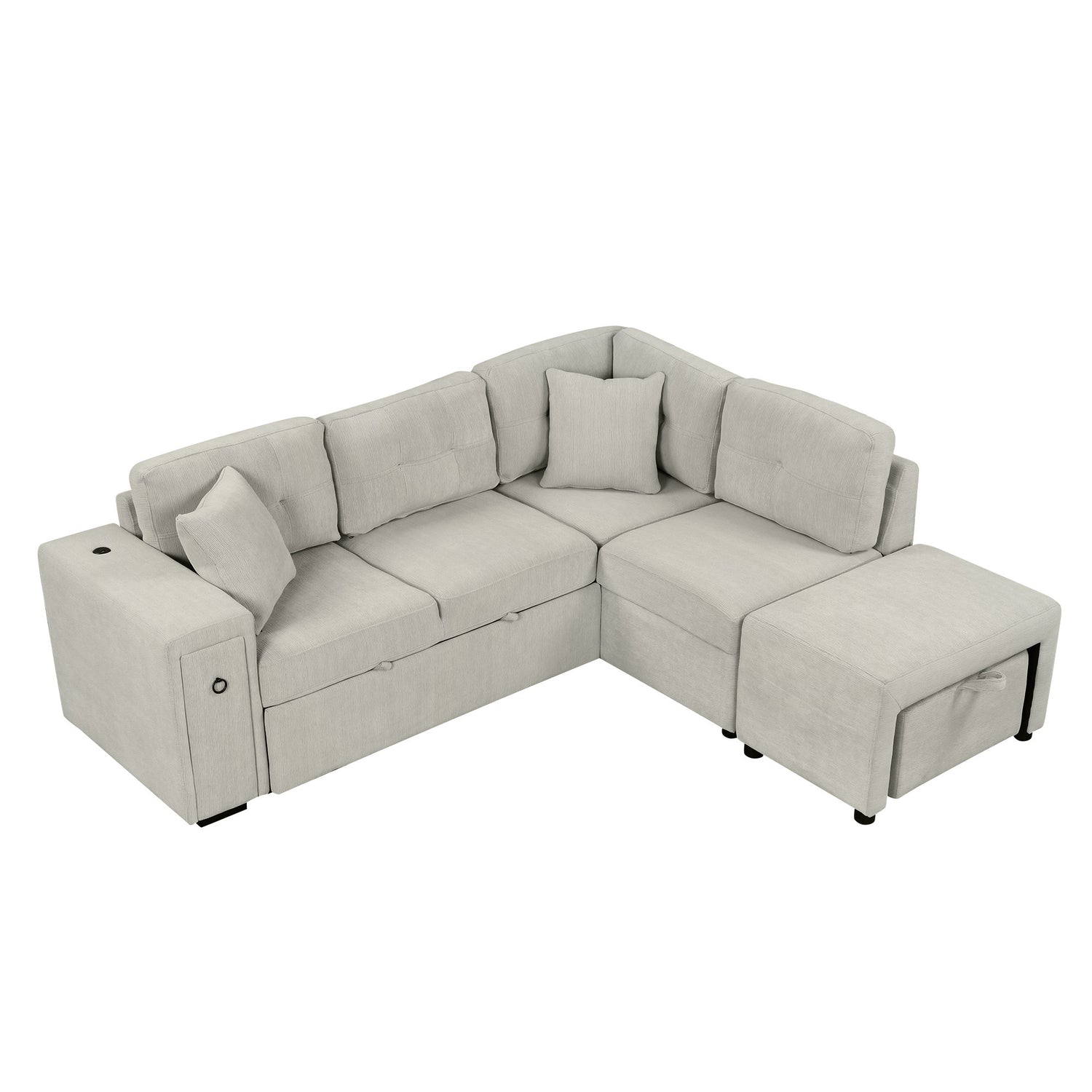 L-shaped Sectional Sofa with Pull-out Bed, Movable Ottoman, USB Ports, Cup Holders, Gray Chenille, 86.6' is available