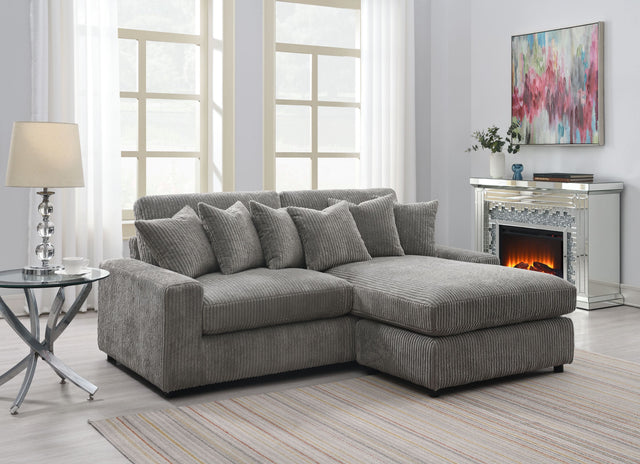 Tavia Gray Corduroy Reversible Sectional Sofa W/6 Pillows is available