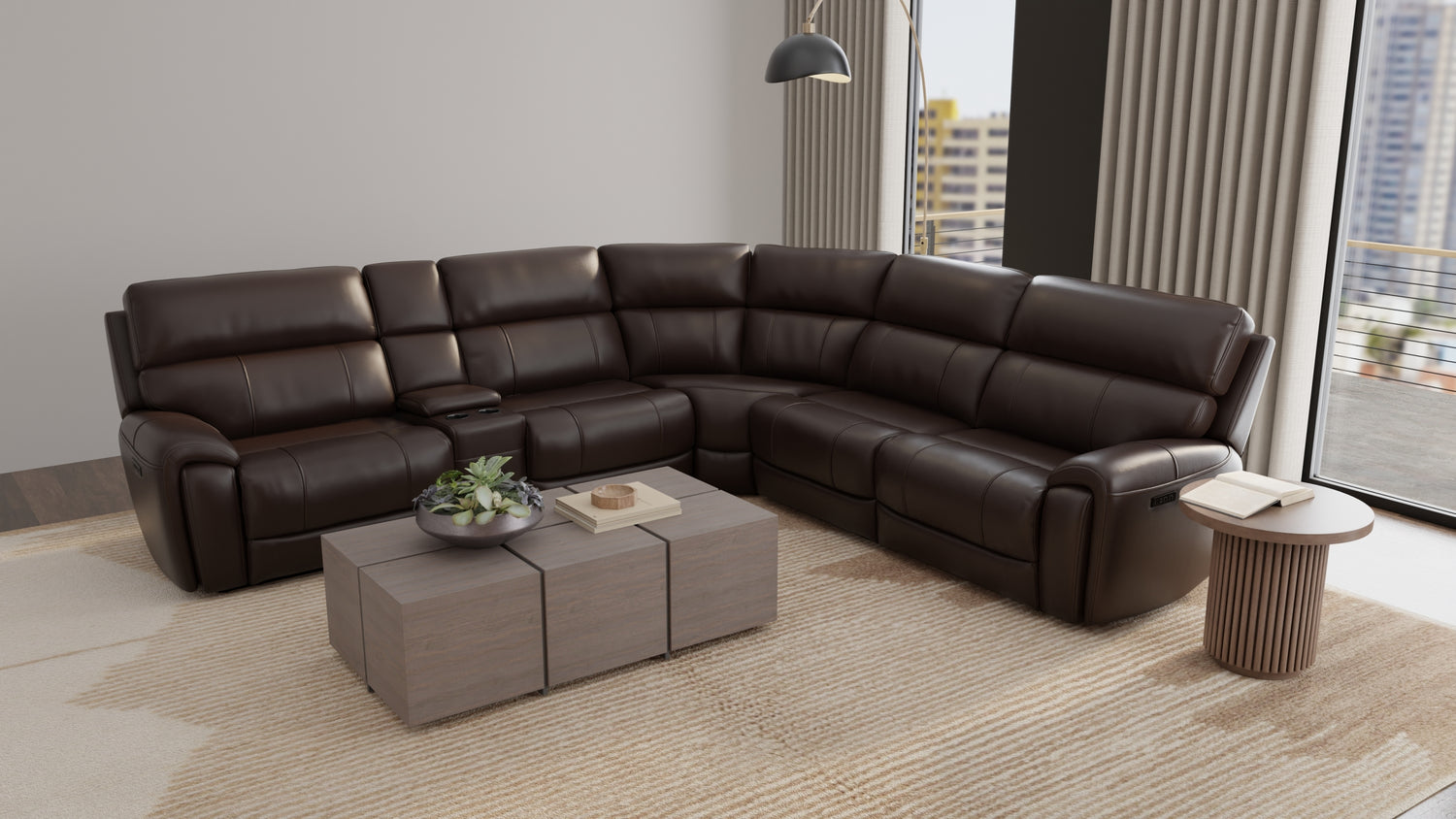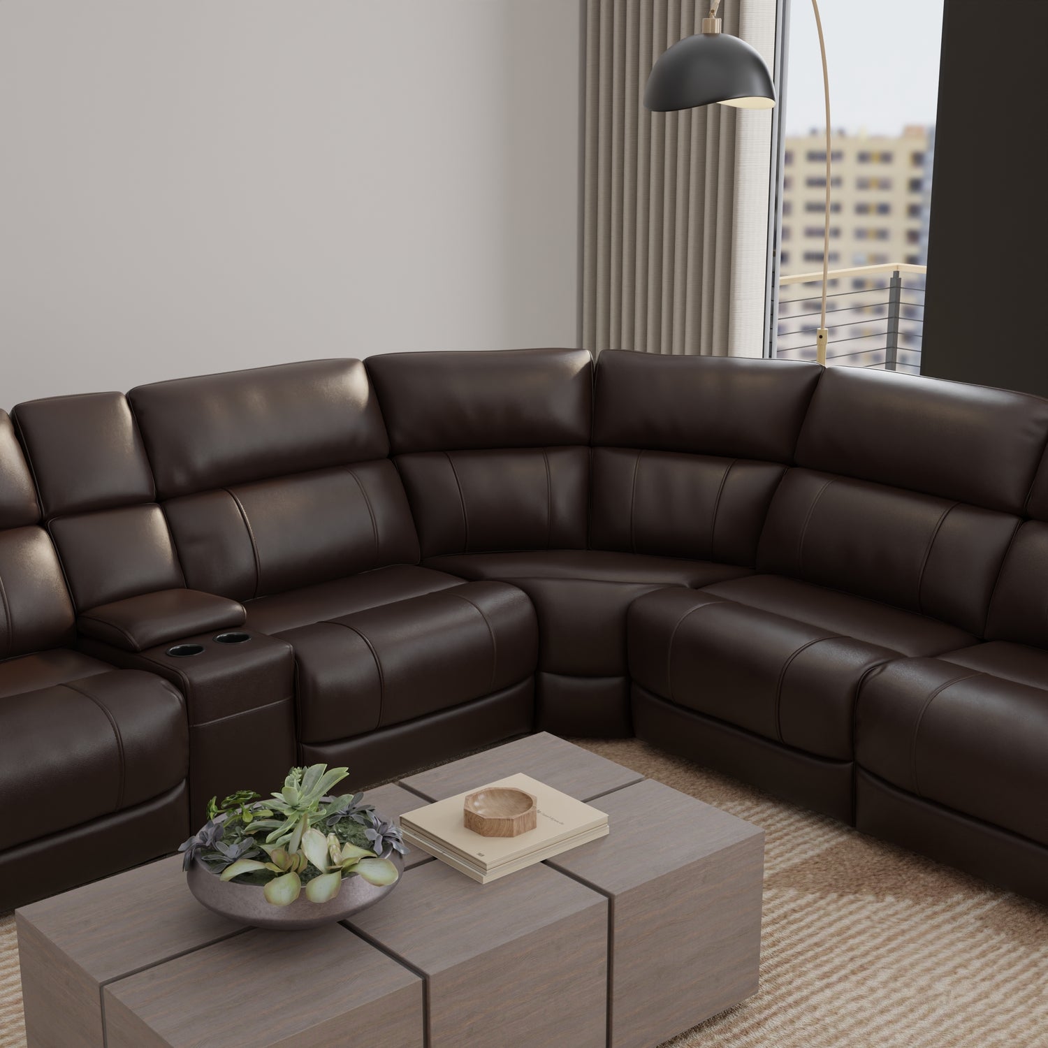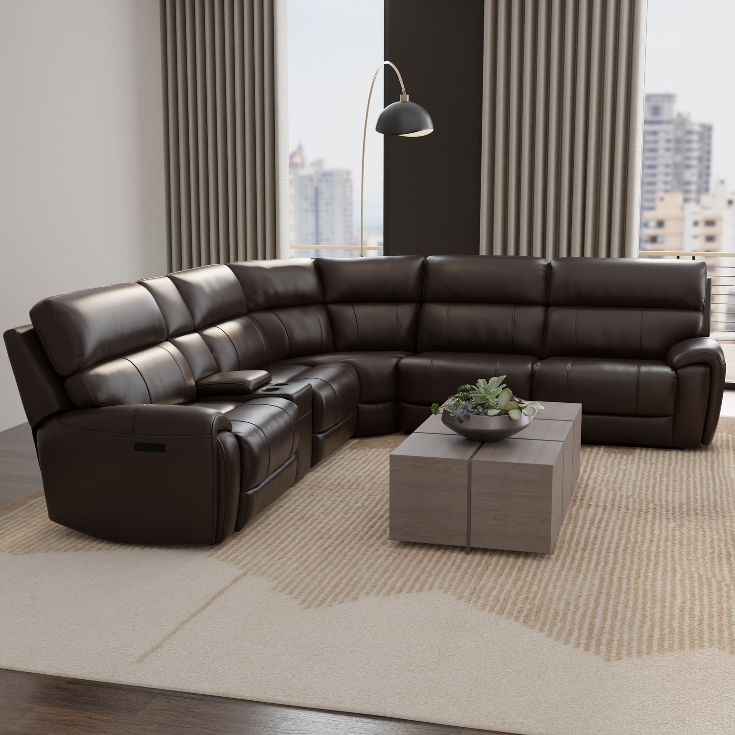 6-Piece Leather Power Sectional in Brazil Tobacco