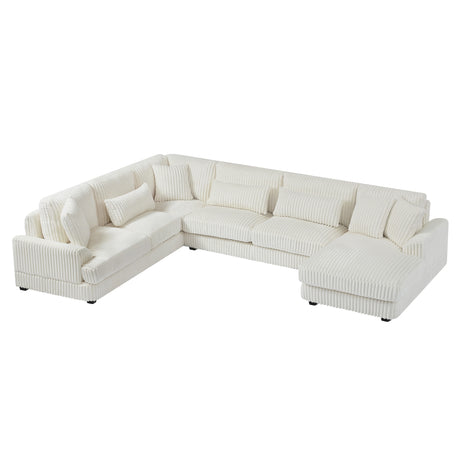 Modern Oversized U-shaped Sectional Sofa with Chaise Lounge in Beige Corduroy, 129'