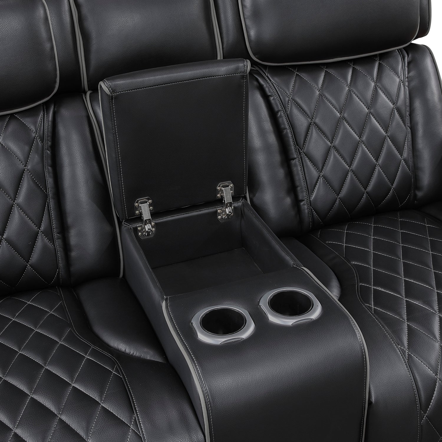 - Hidden Storage & Cup Holders – Includes top and side arm storage plus console cup holders for convenience.