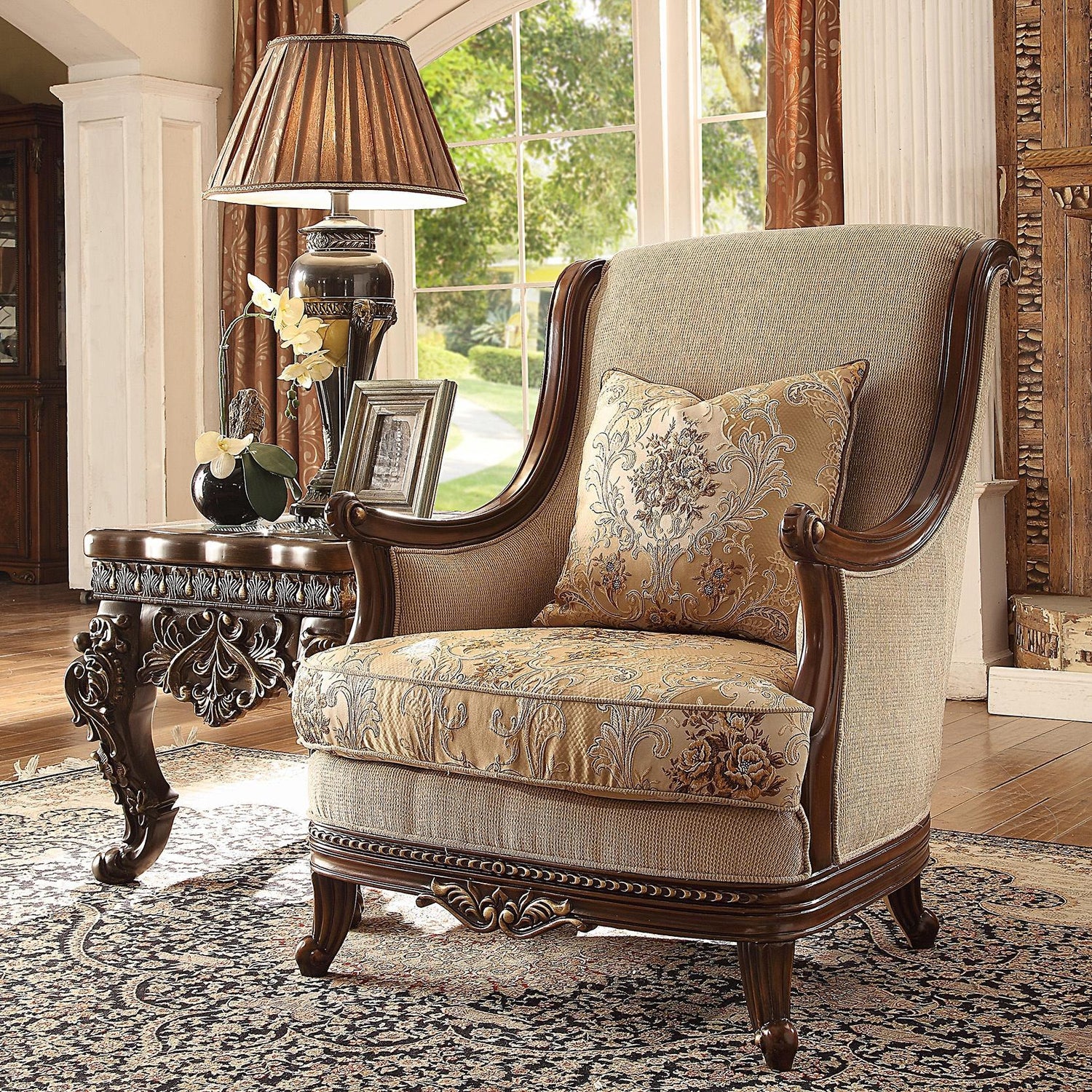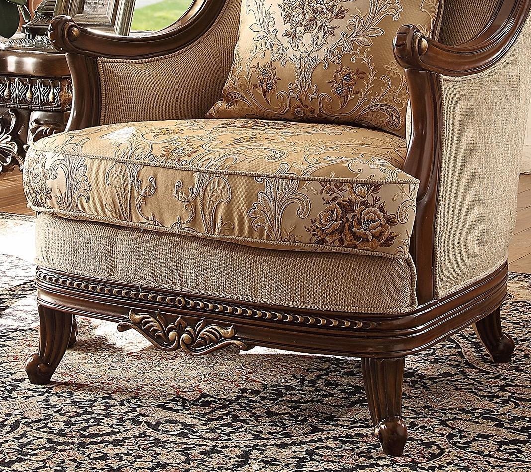 The grandeur of classic designs carries an innate richness and the Traditional HD-92 Living Room Collection. This collection is upholstered with quality and Rich European Luxury Fabric and complimented by stylish accent pillow included as shown. The hand carved solid wood frame outlines the gracefully curved arms and continues along the base in the front and up and over the seat back for an exquisite style that is sure to impress.