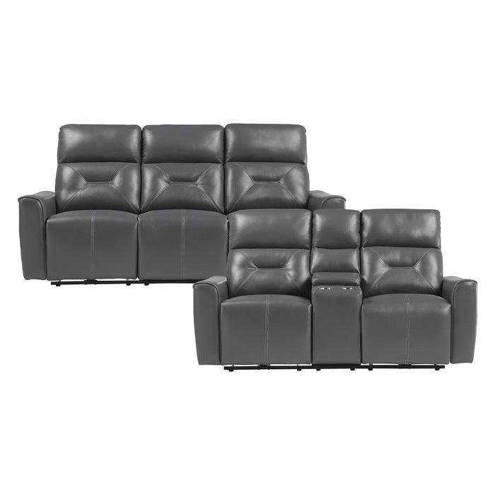 Homelegance - Burwell 2 Piece Double Reclining Sofa Set in Dark Gray - 9446GY*2PW