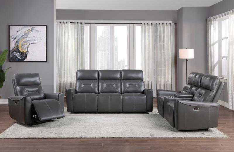 Burwell 3 Piece Power Double Reclining Living Room Set In Dark Gray 9446Gy-3-2-1 | Homelegance is available
