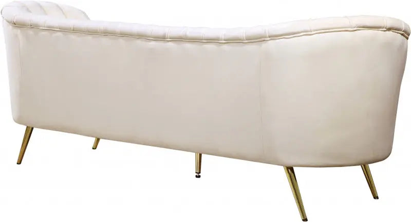 Lean back and lounge in luxurious style on the stunning Cream velvet Margo living room collection by Meridian Furniture. This contemporary collection features plush velvet upholstery that is both classy and sumptuous against your skin, a single seat cushion and rounded arms that curve into a low, rounded back, creating a perfect, modern piece for your home. Gold stainless steel legs support this collection and provide stunning contrast to the plush, black fabric.
