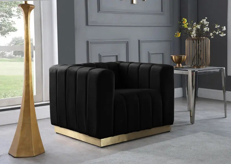 Marlon 3 Piece Living Room Set In Black - 603Black-S-3Set | Meridian is available