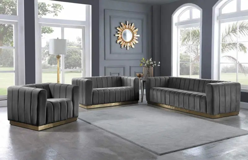 Marlon 3 Piece Living Room Set In Grey - 603Grey-S-3Set | Meridian is available