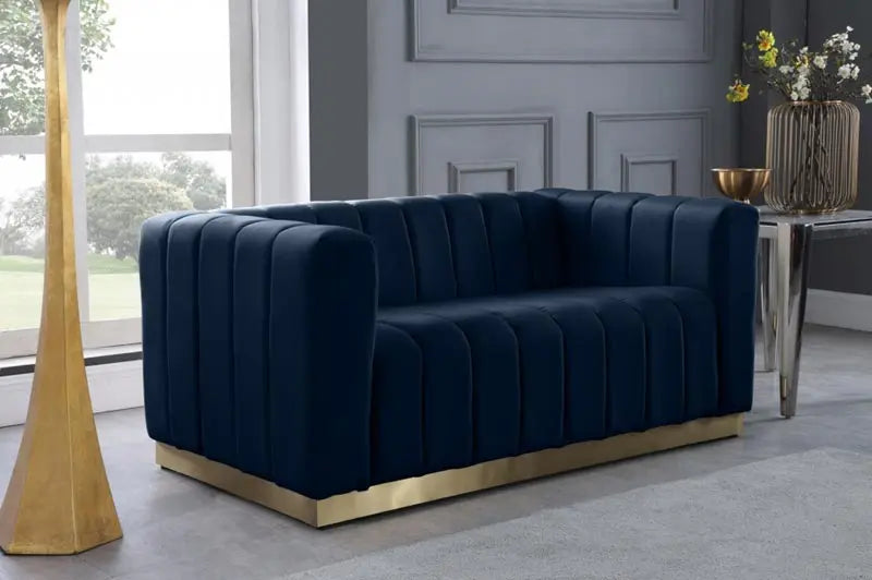 Marlon 3 Piece Living Room Set In Navy - 603Navy-S-3Set | Meridian is available