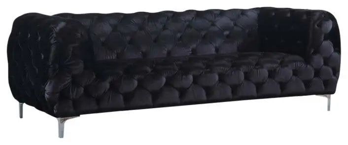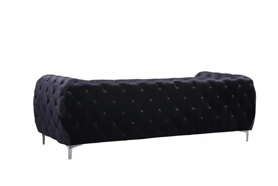 Elegant and eye-catching, the stunning Mercer Living Room from Meridian Furniture is the perfect addition to any space. Rich Velvet covers the plush, comfortable seat, padded with high-density foam and modern tufted design. Strength and beauty is guaranteed with a solid wood frame and chrome legs.