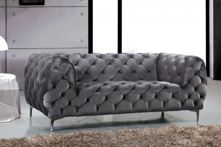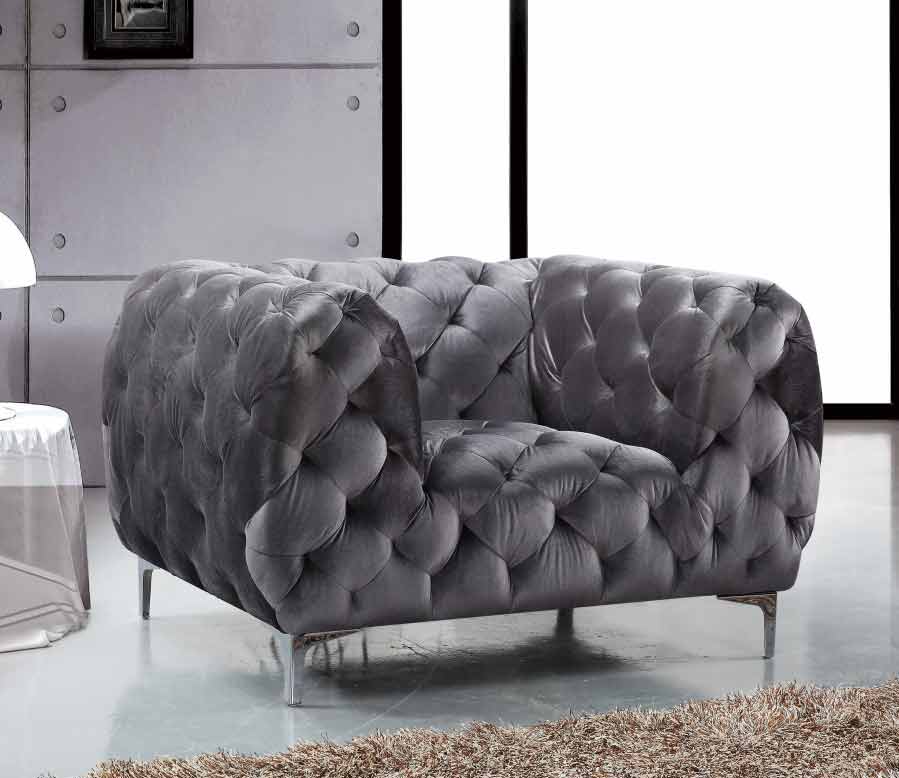 Elegant and eye-catching, the stunning Mercer Living Room from Meridian Furniture is the perfect addition to any space. Rich Velvet covers the plush, comfortable seat, padded with high-density foam and modern tufted design. Strength and beauty is guaranteed with a solid wood frame and chrome legs.