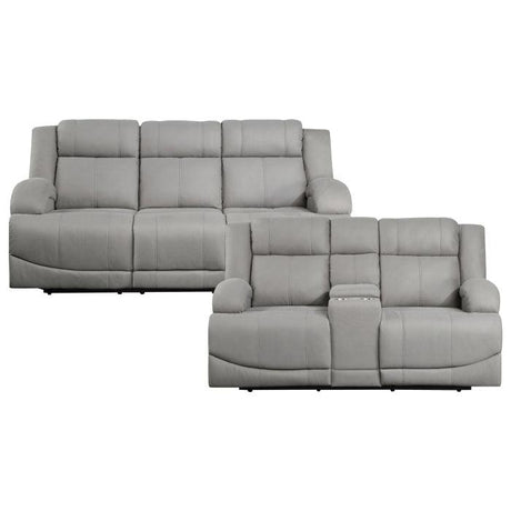 Camryn 2 Piece Power Double Reclining Sofa Set In Gray 9207Gry*2Pw | Homelegance