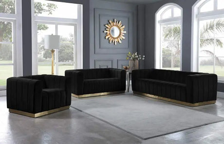 Marquis 3 Piece Living Room Set In Black - 600Black-S-3Set | Meridian