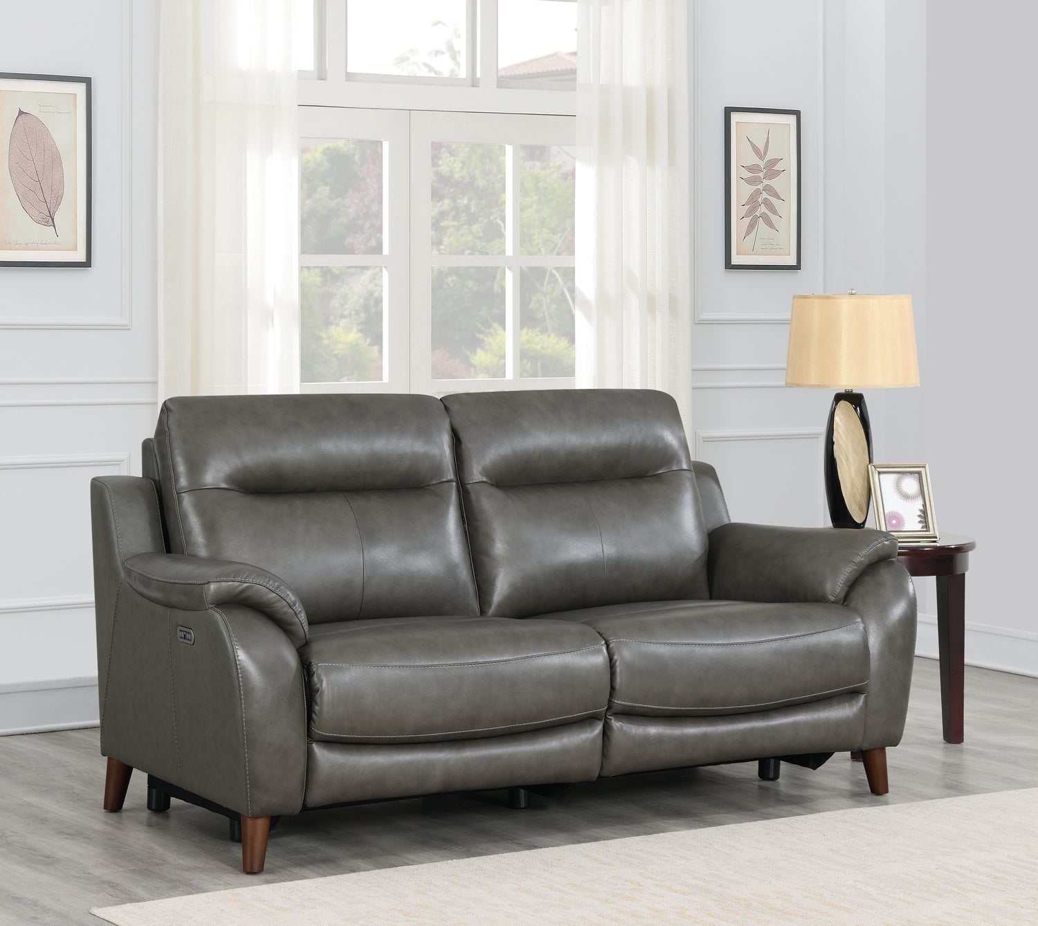 Dimensions Carton Dimensions L 85 x W 41 x H 34 Features -Top-grain leather with vinyl sides and back -Pocketed coil seat cushions -Sinuous wire spring mechanism -Power footrest and power articulating headrest Product Description Indulge in the ultimate comfort and style with the Trento Dual Power Sofa Charcoal. Wrapped in luxurious top grain leather with faux-leather sides, this high leg reclining sofa exudes sophistication and elegance. Sink into relaxation as you experience the power footrest and power headrest functionalities, allowing you to find the perfect position for your utmost comfort.The Trento Dual Power Sofa Charcoal combines both comfort and style, making it a standout piece in any living space. Its plush seating and sleek design create a stylish presentation that is sure to impress. Whether you're entertaining guests or enjoying a quiet evening at home, this sofa provides the perfect blend of luxury and functionality.Embrace the epitome of luxurious comfort with the Trento Dual Power Sofa Charcoal. Its top grain leather upholstery adds a touch of opulence, while the power reclining features enhance your lounging experience. Sit back, relax, and let this sofa become your personal oasis of relaxation and style.Payment & Security