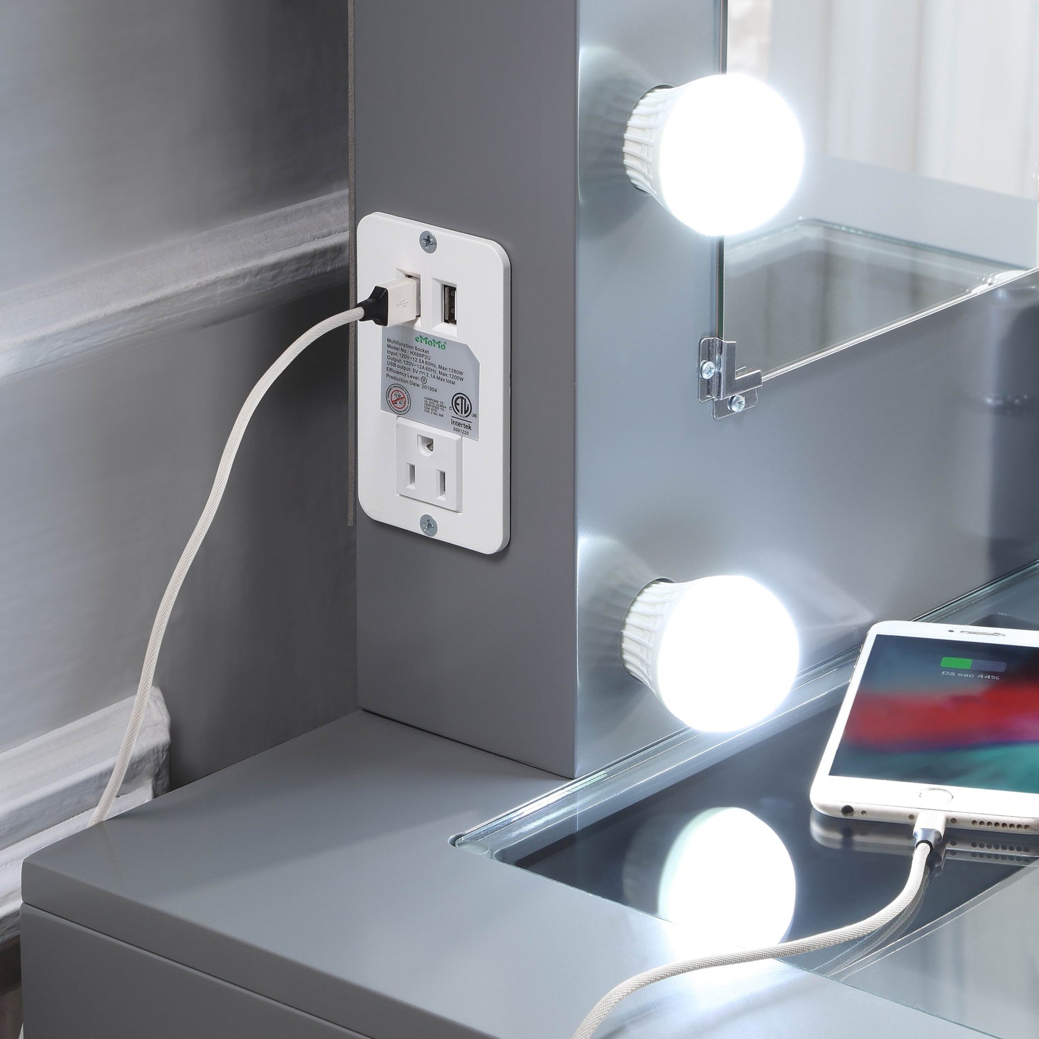 Gray Makeup Vanity and Stool Set with 10 Lights and USB Port and Power Outlet, 2x Drawers Luxurious Style Furniture is available