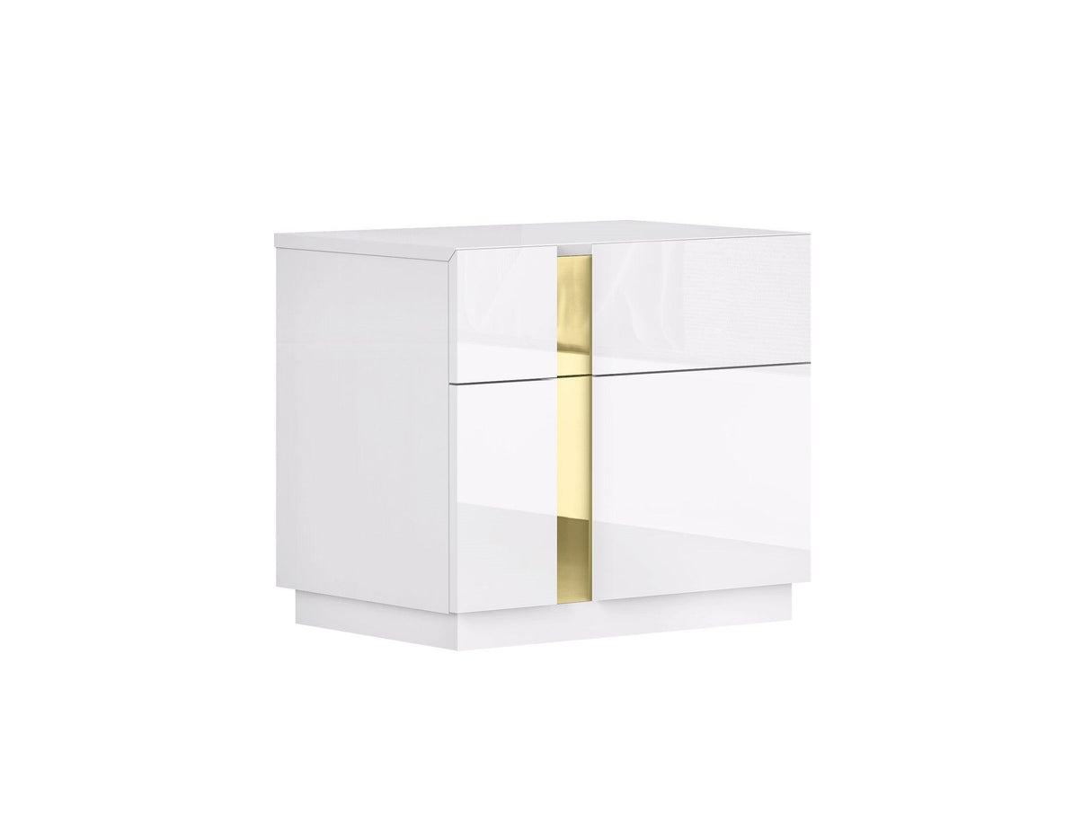 The Kyoto Bedroom Collection by J&M is the newest addition to our Modern Bedroom Category. The Kyoto bedroom features a white high gloss lacquer finish, accented by polished gold. The Headboard features an LED light strip that runs parallel to the gold accent bisecting the headboard horizontally. All case good drawers feature our premium soft close mechanism. The sleek and modern design of the Kyoto collection is sure to complement and accentuate any contemporary home.
