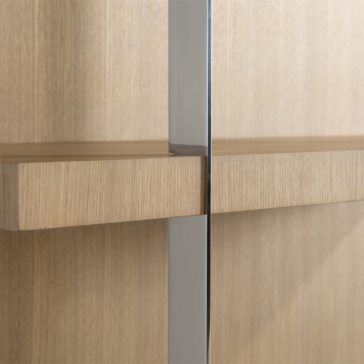 - Two thin stainless support panels in Polished Stainless Steel finish run the full length of the etagere