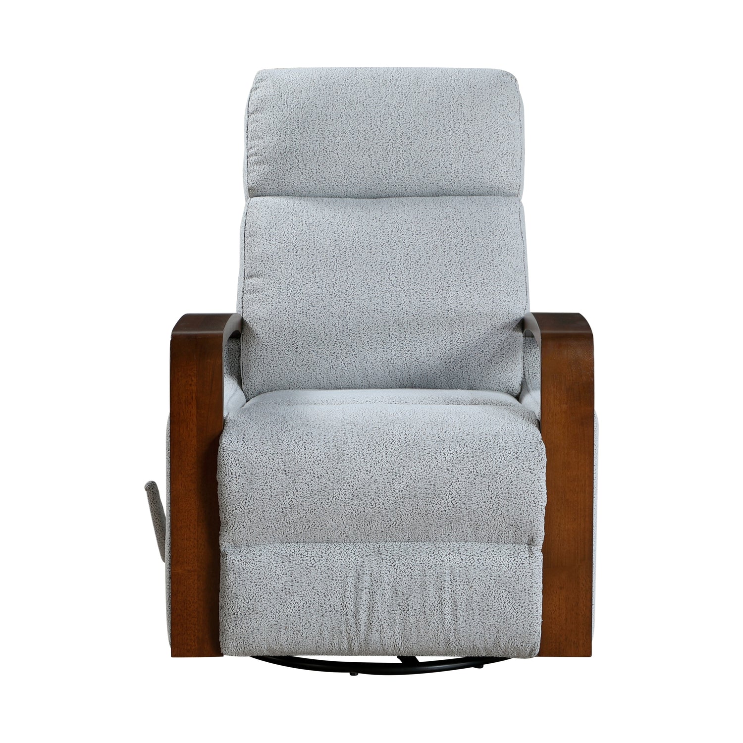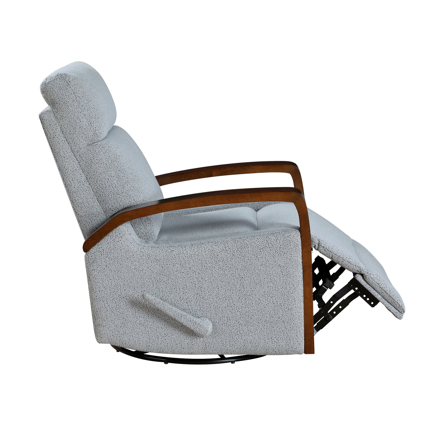 New Luxurious Swivel Glider Reclining Chair Gray Boucle Fabric Upholstery Comfortable Brown Finish Wooden Arms Living Room Furniture 1pc