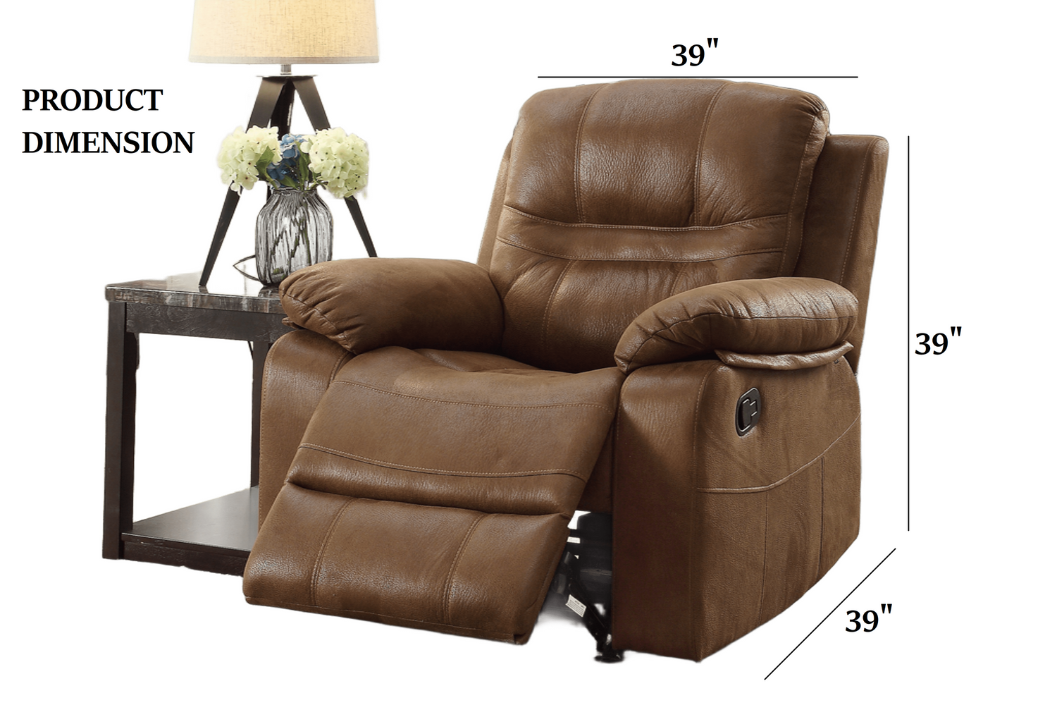 Manual Recliner: 39' x 39' x 39'H