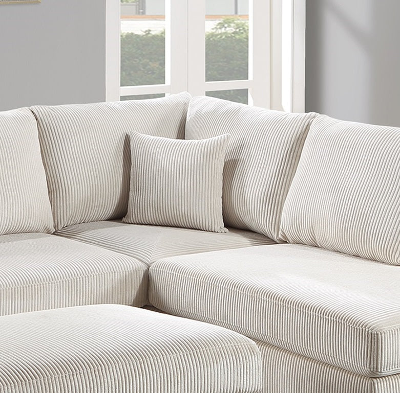 Ivory Color 3pc Sectional Set Corduroy Upholstered LAF Sofa RAF Chaise Ottoman L-Sectional Living Room Furniture