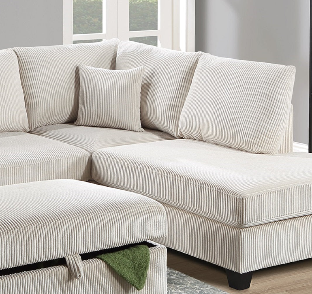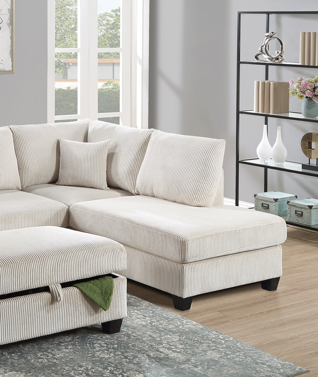Ivory Color 3pc Sectional Set Corduroy Upholstered LAF Sofa RAF Chaise Ottoman L-Sectional Living Room Furniture is available
