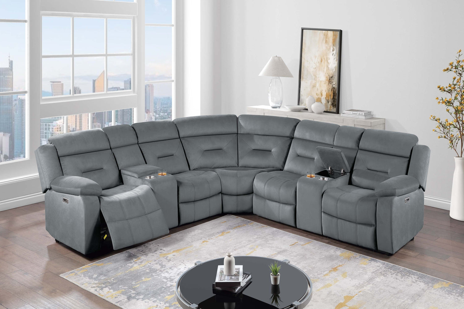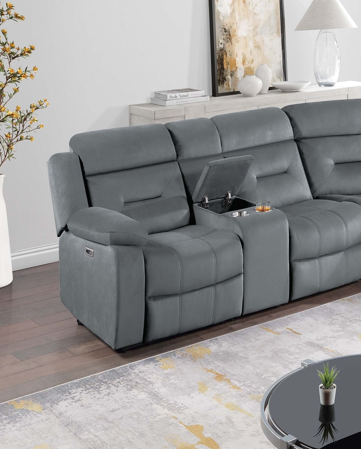 Contemporary Style Power Reclining Sectional Set Two Console Cup Holder Power Motion Dark Gray Finish Primary Living Room is available